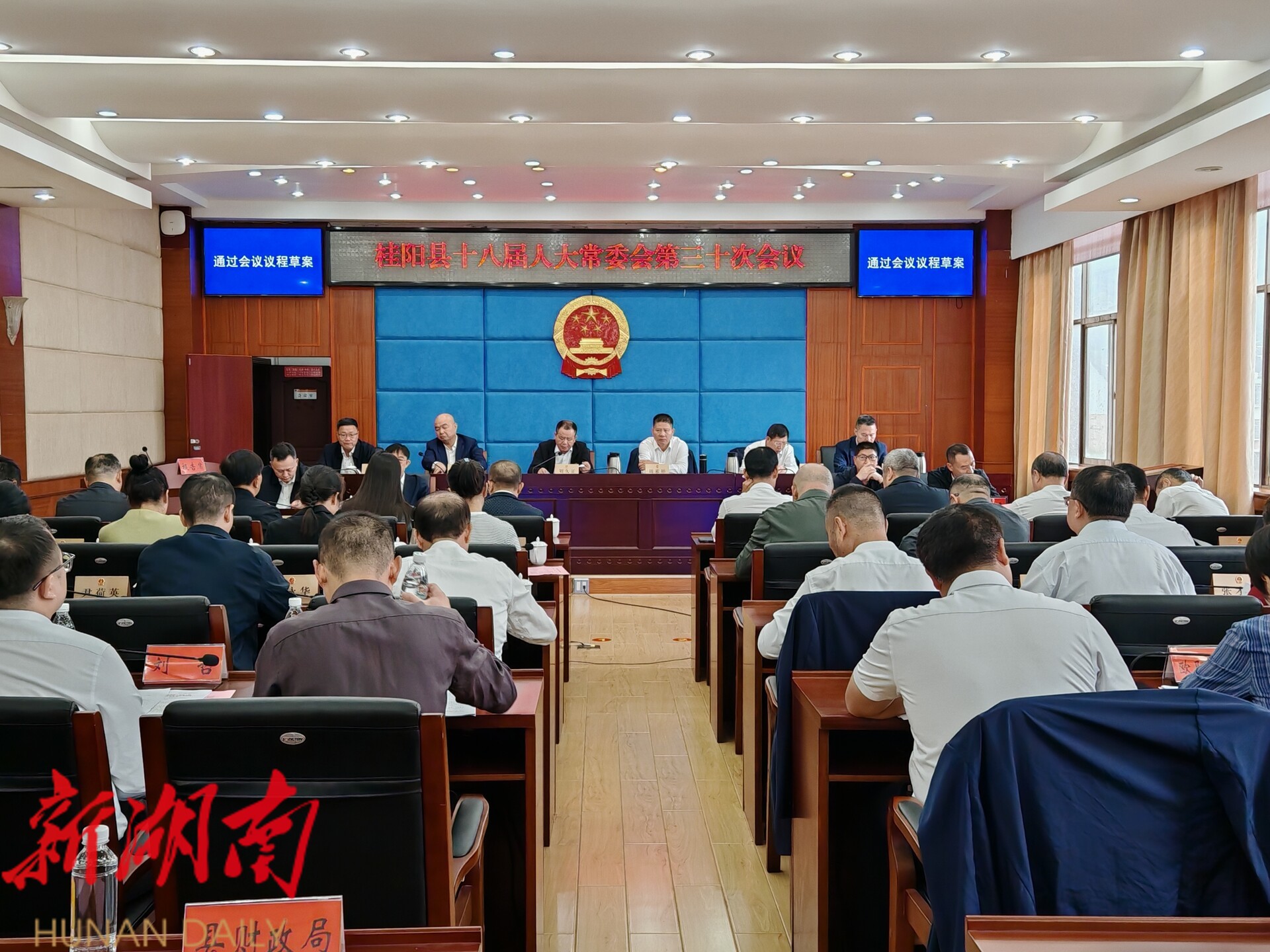 会议审议通过了《桂阳县第十八届人民代表大会代表补选工作实施方案(草案)》《关于补选桂阳县第十八届人民代表大会代表选举日的决定(草案)》;会议听取和审议了县人民政府关于2025年上半年国民经济和社会发展计划执行情况的报告、关于2024年财政决算(草案)和2025年上半年预算执行情况及2025年预算调整方案(草案)的报告、关于2024年度预算执行和其他财政收支的审计工作报告,审查和批准了2024年财政决算、2025年预算调整方案;听取和审议了县人民政府关于全县2023年环境状况和环境保护目标完成情况报告审议意见研究处理情况及2024年环境状况和环境保护目标完成情况的报告。