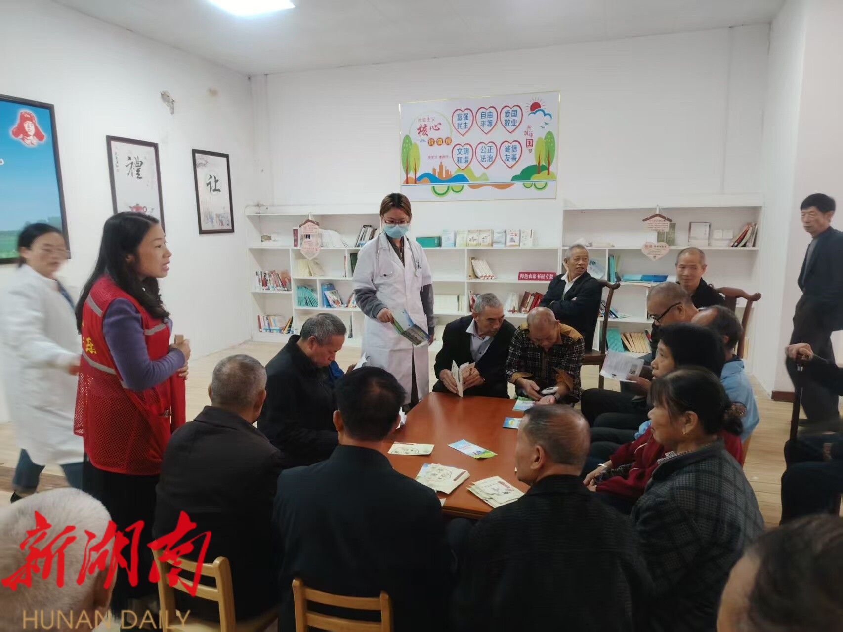 湖南日报·新湖南客户端9月28日讯(通讯员 杨正敏)9月26日,祁阳市白水镇竹山村联合镇卫生院在农家书屋共同举办“杏林书屋・健康驿站全民健康行”活动,以健康宣讲、老年人义诊、养生学习为核心,为全村人送上一场接地气、暖人心的“健康盛宴”。