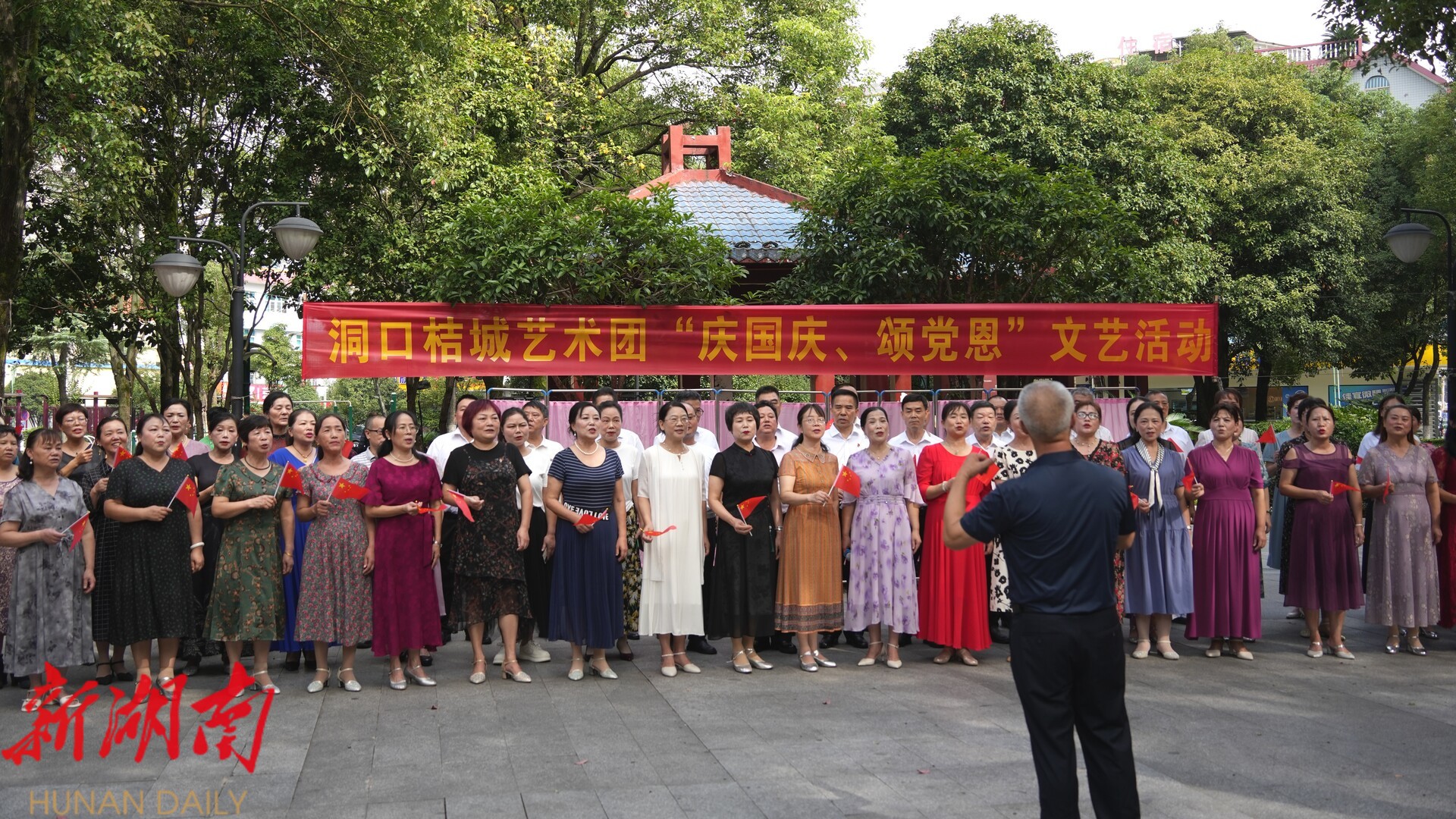 洞口融媒9月28日讯(记者:林巍浩) 歌舞飞扬,深情礼赞。在国庆节来临之际,9月28日,洞口县桔城艺术协会开展“迎国庆 颂党恩”文艺汇演活动,为祖国献上诚挚祝福。精彩纷呈的节目不仅点燃了群众的爱国热情,更彰显了新时代的文化自信。