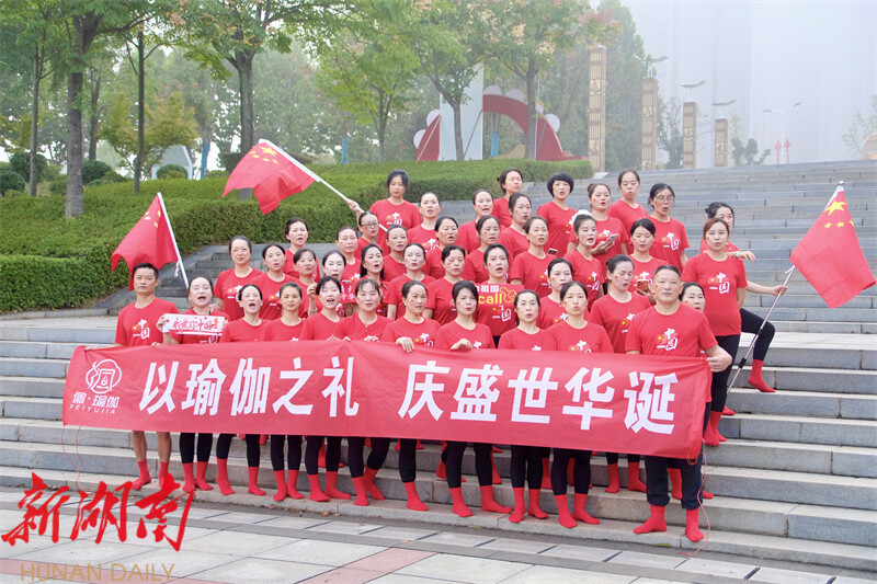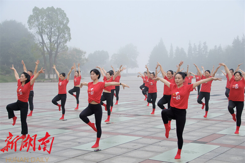 湖南日报·新湖南客户端9月28日讯(通讯员 黄阳娇) 9月28日清晨,岳阳县瑜伽培训机构开展“以瑜伽之礼 庆盛世华诞”主题活动,数十名瑜伽爱好者以舒展的身姿、平和的气息,在自然与晨光中勾勒出一幅活力满满的画卷。