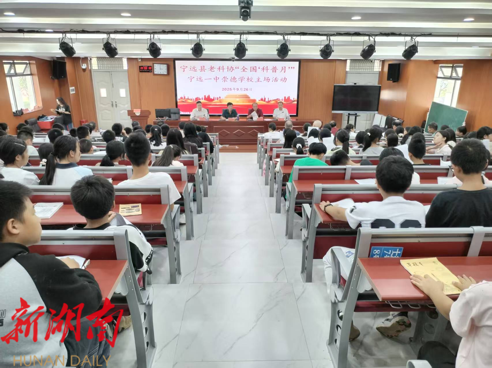 湖南日报·新湖南客户端9月28日讯(通讯员 骆丽霞 欧阳秉民 胡玲芝 ) 近日,宁远县老科协组织县教育局、科工局、环保局等多个分会的专家志愿者,走进宁远一中崇德学校,开展“全国‘科普月’”科普知识进校园活动,将实用的科学知识送进班级、送到学生身边。