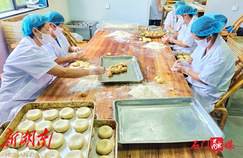 走进石门县健健食品有限公司的加工车间,月饼的浓香扑面而来,工人师傅们严格遵循传统工艺,坚持全程手工制作,他们正忙着进行馅料调配、和面、包馅、压模、烘烤,经过多道工序,刚烤出的月饼外皮金黄酥脆,内馅软糯香甜。现在,这里生产的月饼除了供应周边市场,还通过自家主播在线上销售,深受市场欢迎。