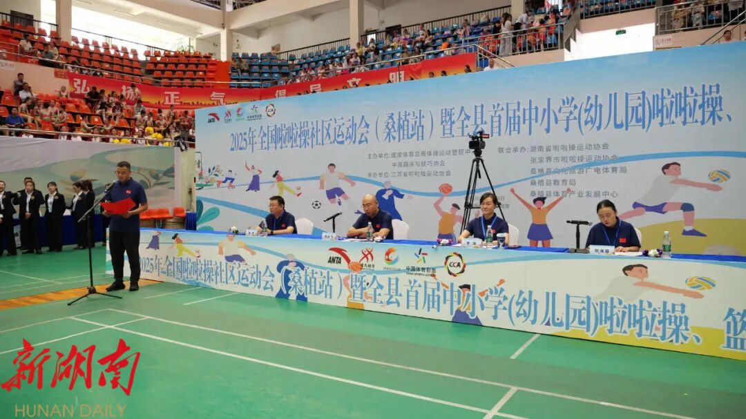 湖南日报·新湖南客户端9月28日讯(通讯员 张芬)9月28日,2025年全国啦啦操社区运动会(桑植站)暨桑植县首届中小学(幼儿园)啦啦操、篮球表演操比赛在贺龙体育馆举行。县委常委、副县长宋云飞出席开幕式。