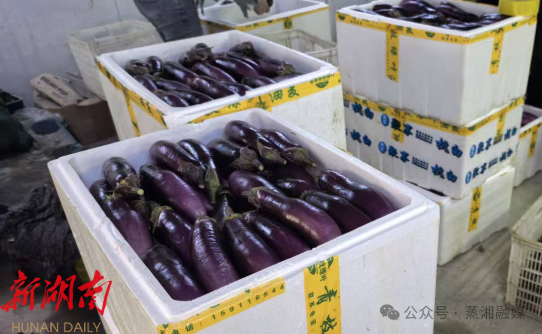 在分拣打包区域,一筐筐紫得发亮的 油罐茄 被精心装箱, 即将发往各大商场和农贸市场 。