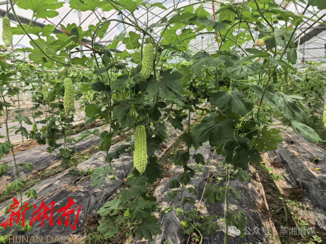 大棚里,苦瓜长势喜人、形状饱满,正待采摘。