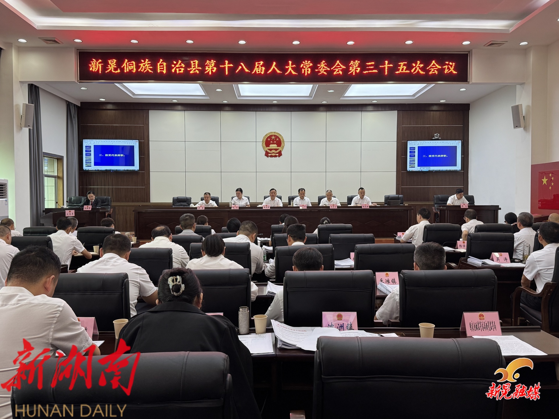 会议组织学习了《中华人民共和国义务教育法》;听取和审议表决通过了新晃侗族自治县第十八届人民代表大会常务委员会代表资格审查委员会关于个别代表的代表资格的报告(草案);听取和审议并表决通过了县人民政府关于落实《关于2024年法治政府建设工作情况报告的审议意见》情况的报告、关于2025 年县本级财政预算调整方案(草案)的报告、 《关于2024年对全县教育工作及教育经费预决算情况的审议意见》办理落实情况的报告、《关于2024年全县环境状况和环境保护目标完成情况以及2025年环境目标计划安排报告的审议意见》办理情况的报告;听取和审议并表决通过了县人大财政经济委员会关于2025年县本级财政预算调整方案的审查结果报告、县人大教育科学文化卫生委员会《关于加强在校中小学生使用手机等智能终端产品管理的决定(草案)》的议案及说明。听取和审议并 表决通过了 县人民法院关于落实《关于破产审判工作情况报告的审议意见》情况的报告 、 县人民检察院关于落实《关于刑事检察工作情况报告的审议意见》情况的报告 ;听取和审议表决通过了《新晃侗族自治县农村供水工程运行管理条例》(草案·二审送审稿);听取和审议了 重大政策财政资金和重要专项资金“两问四评”监督工作相关情况报告并进行满意度测评 。