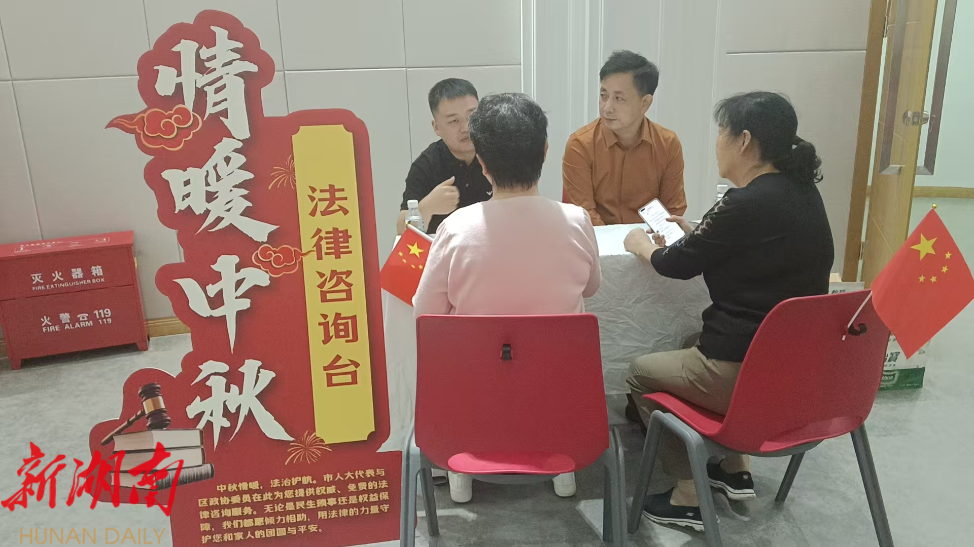 “孩子总刷短视频购物,怎么防骗?”“楼上装修噪音大,怎么协调?”在“法治护航站”,市人大代表张治梧、区政协委员曾强被居民团团围住。他们结合案例,用通俗语言讲解防骗“三不原则”和邻里纠纷依法解决途径,现场发放维权热线宣传册。