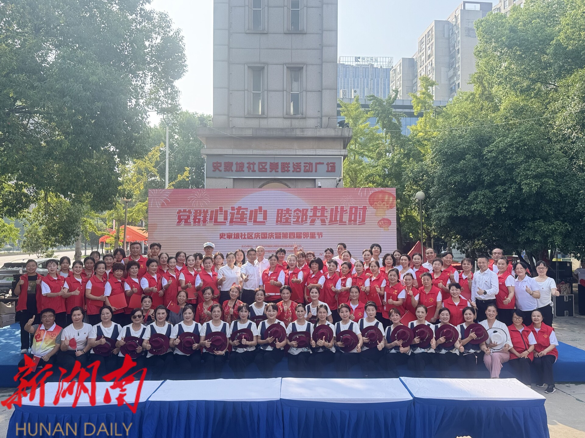 湖南日报·新湖南客户端9月29日讯(通讯员 杨清 罗春兰)为进一步密切党群关系,强化网格服务,营造“与邻为善、以邻为伴”的社区氛围,9月28日下午,开福区浏阳河街道史家坡社区组织开展“党群心连心 睦邻共此时”第四届邻里节活动,100余名社区党员、志愿者以及社区各网格片区文艺爱好群众齐聚史家坡社区党群活动广场,通过文艺展演、居民互动等活动,共庆祖国华诞,共襄邻里盛会。