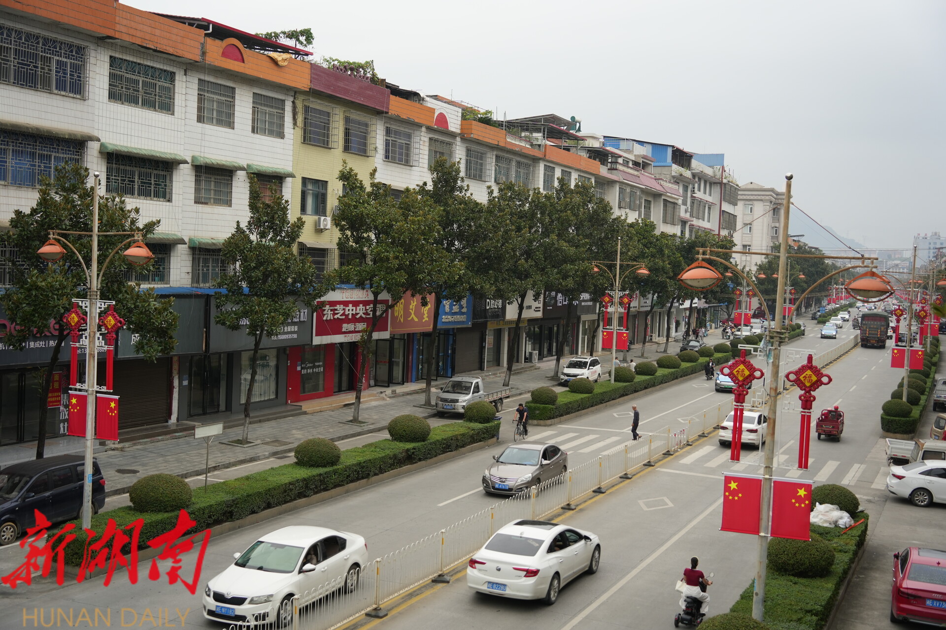 挂国旗、迎国庆,洞口县大街小巷披上“中国红”
