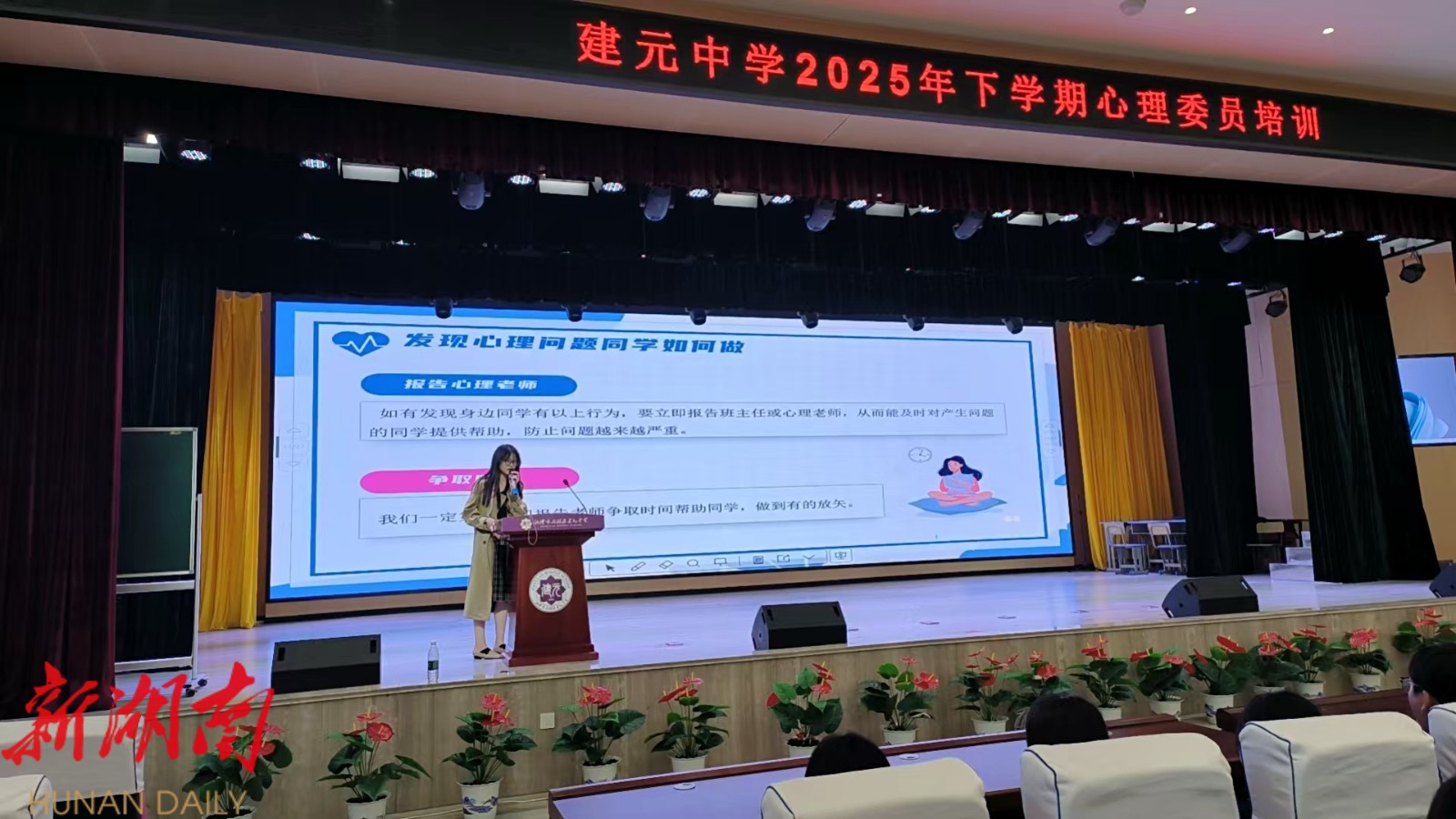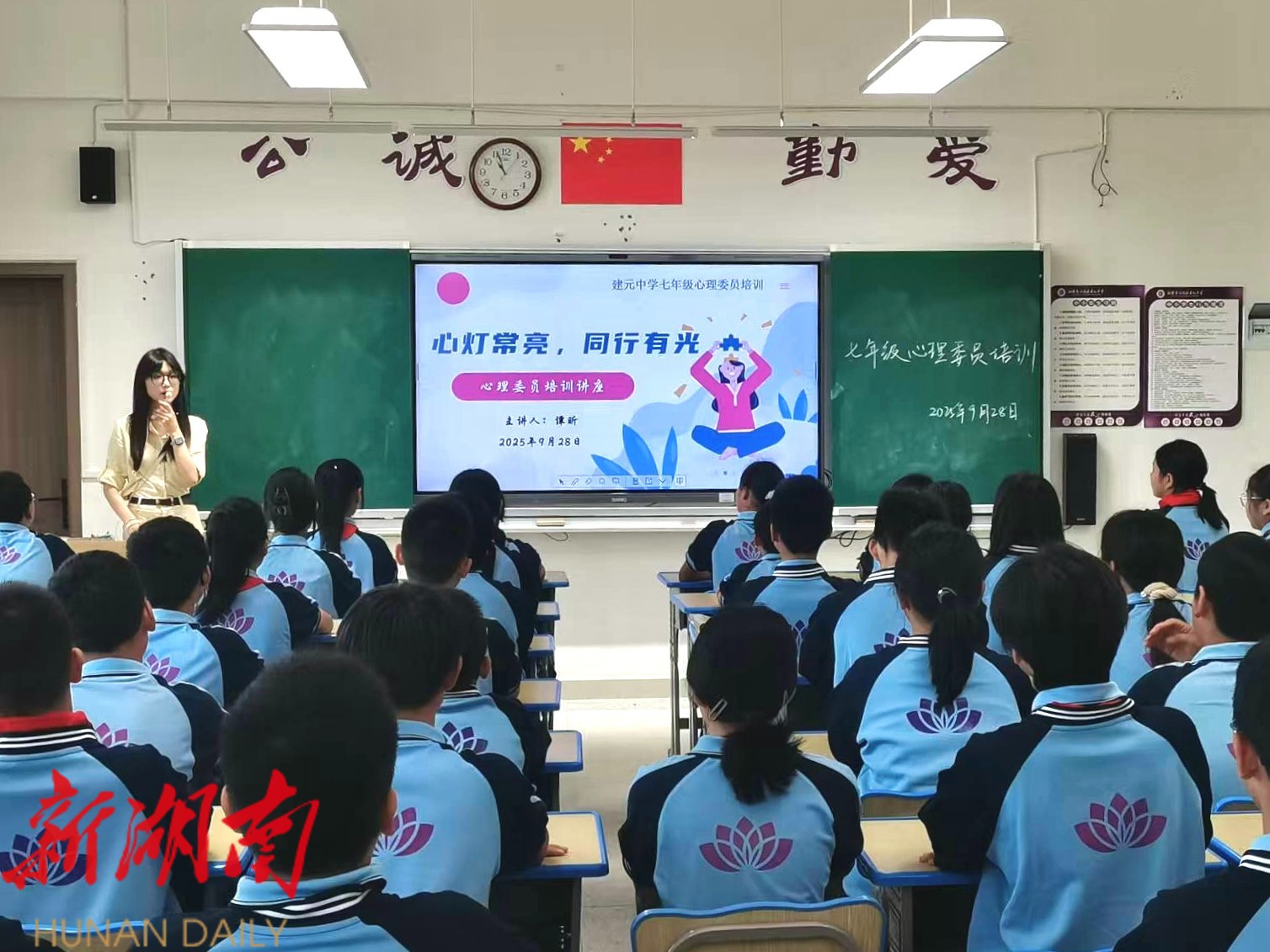 雨湖融媒9月28日讯 (通讯员 谭昕) 每一颗青春心灵的成长,都离不开温暖的守护。为进一步筑牢校园心理健康防线,全面提升心理委员的专业素养与服务效能,近日,雨湖区建元中学心理健康中心精心策划了三场心理委员专项培训,覆盖七八九三个年级,惠及全体班级与宿舍心理委员,为校园“心健康”注入强劲动能。
