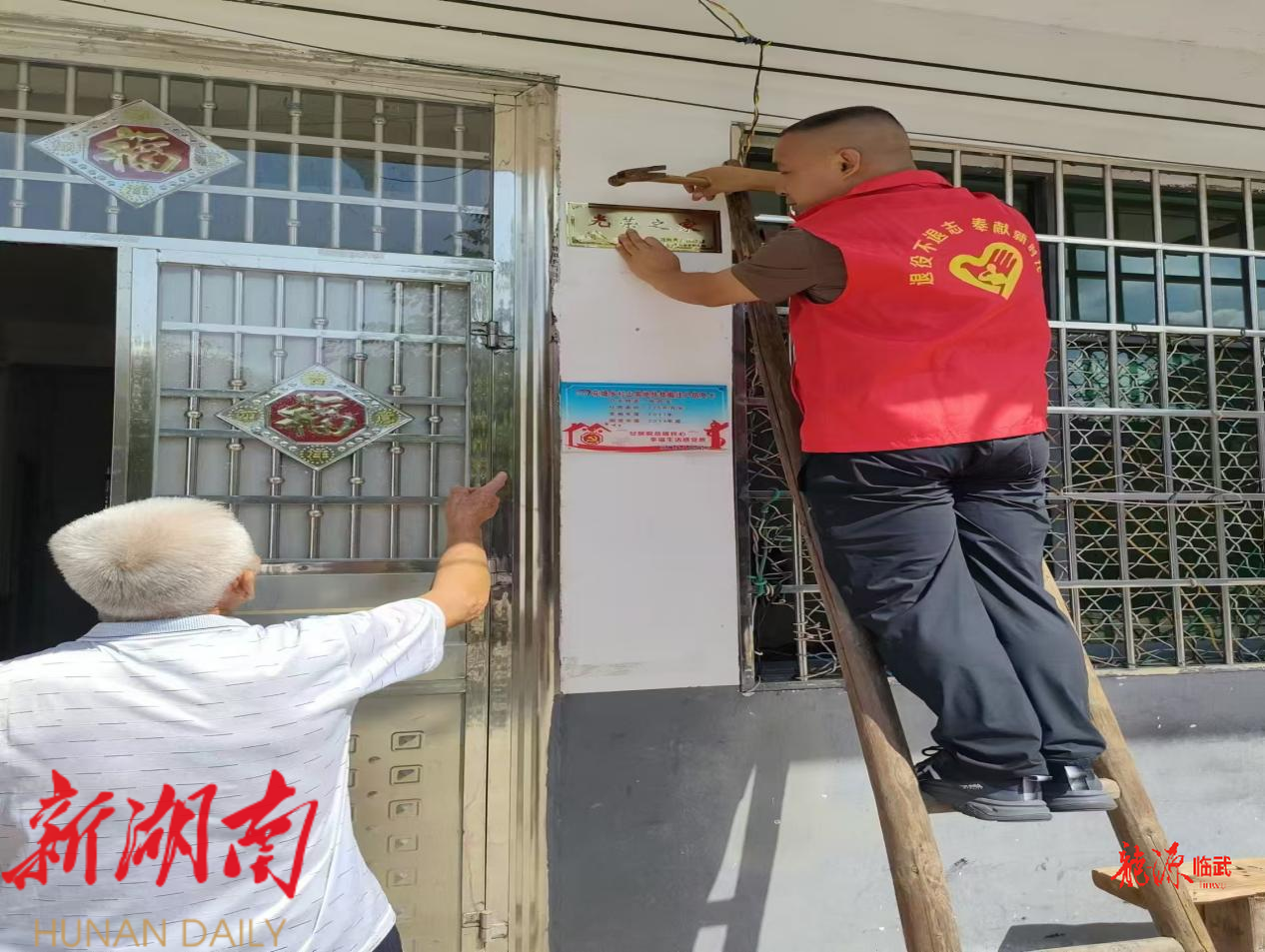 临武县花塘乡退役军人服务站为入伍新兵家庭悬挂光荣牌