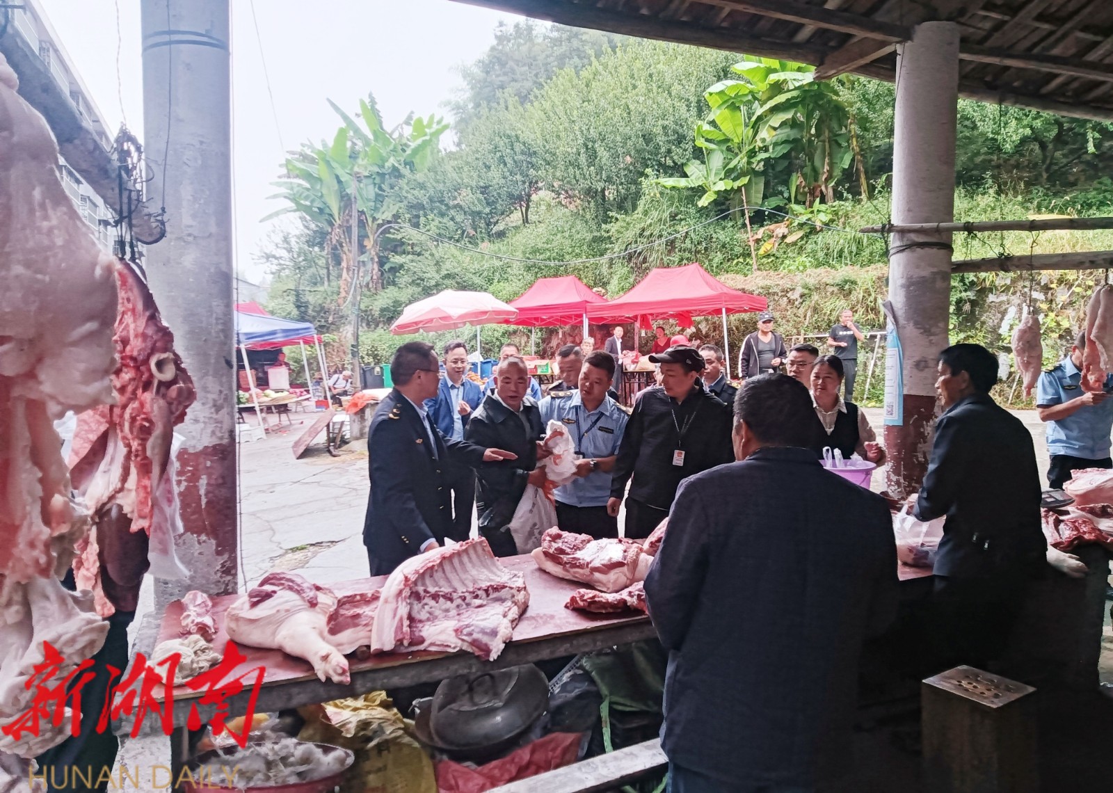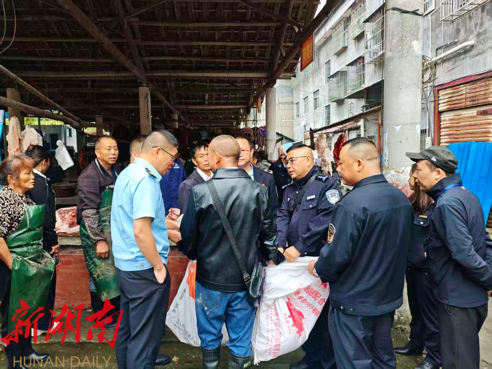 检查组一行先后来到新路河镇石宝农贸市场、铁坡镇活水农贸市场,对经营主体资质及肉制品进货渠道进行严格核查,重点检查生鲜肉及肉制品的检验检疫合格证明、肉品品质合格证,严厉打击销售未经检验检疫、来源不明、病死畜禽肉及注水肉、非法添加等违法行为。同时,执法人员向经营者宣传食品安全相关法律法规,督促经营者严格落实食品安全主体责任,严把食品进货关、质量关和安全关。此次联合行动,共出动执法人员46人次,检查农贸市场肉制品销售摊贩20个,扣押“白板肉”101.8公斤。