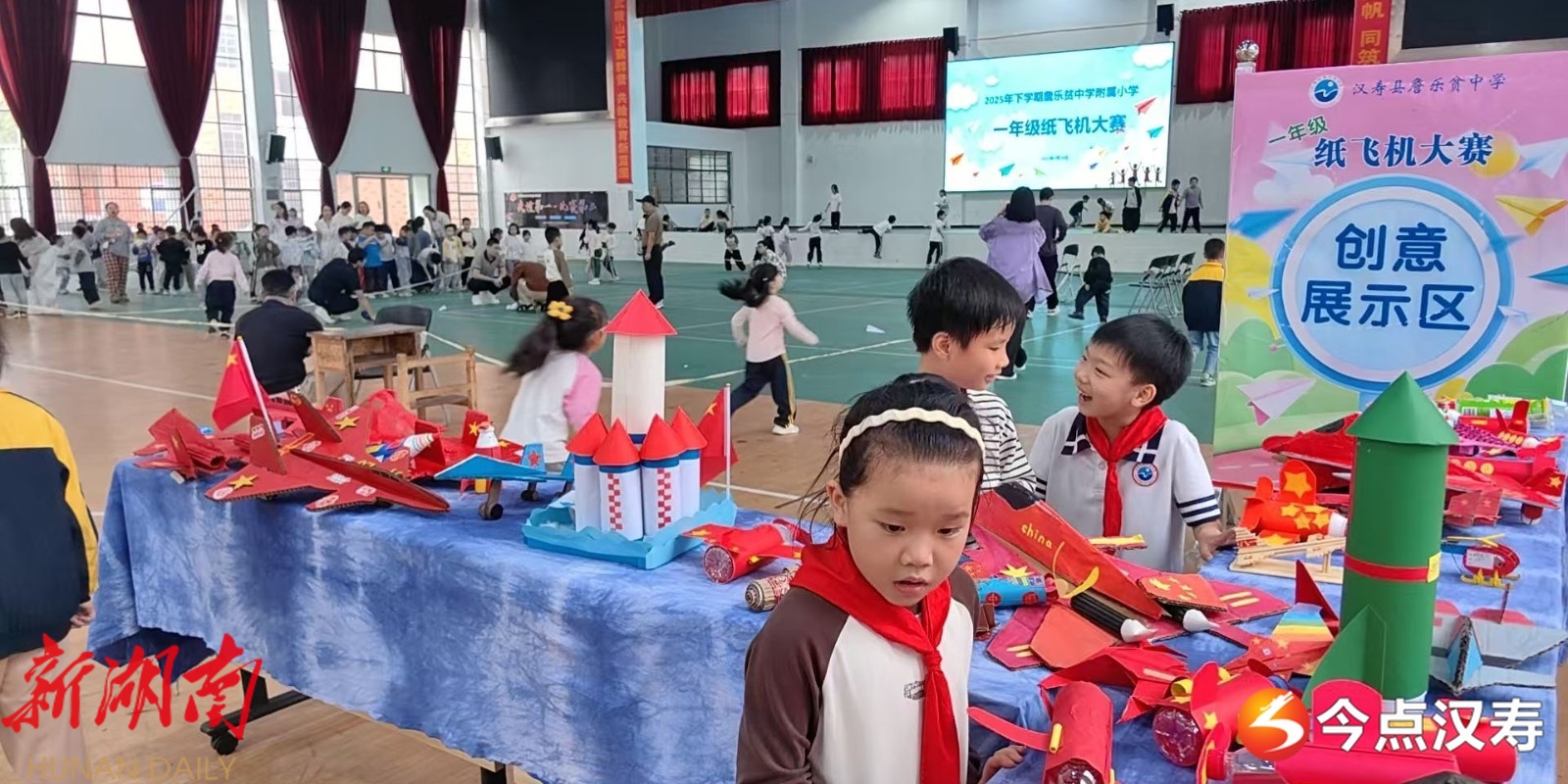 “我折的飞机飞了15米!”一年级学生王明轩兴奋地告诉记者,“爸爸教过我,机头要折得尖一些,翅膀要对称,这样才能飞得远。”