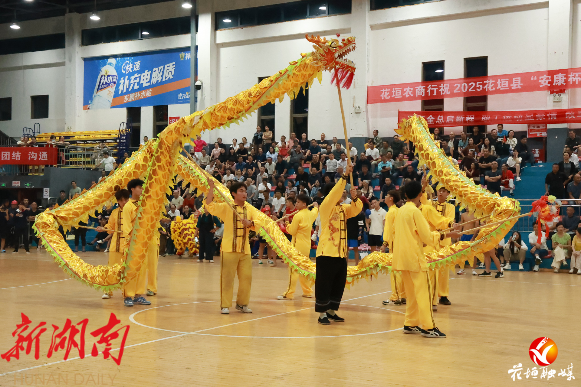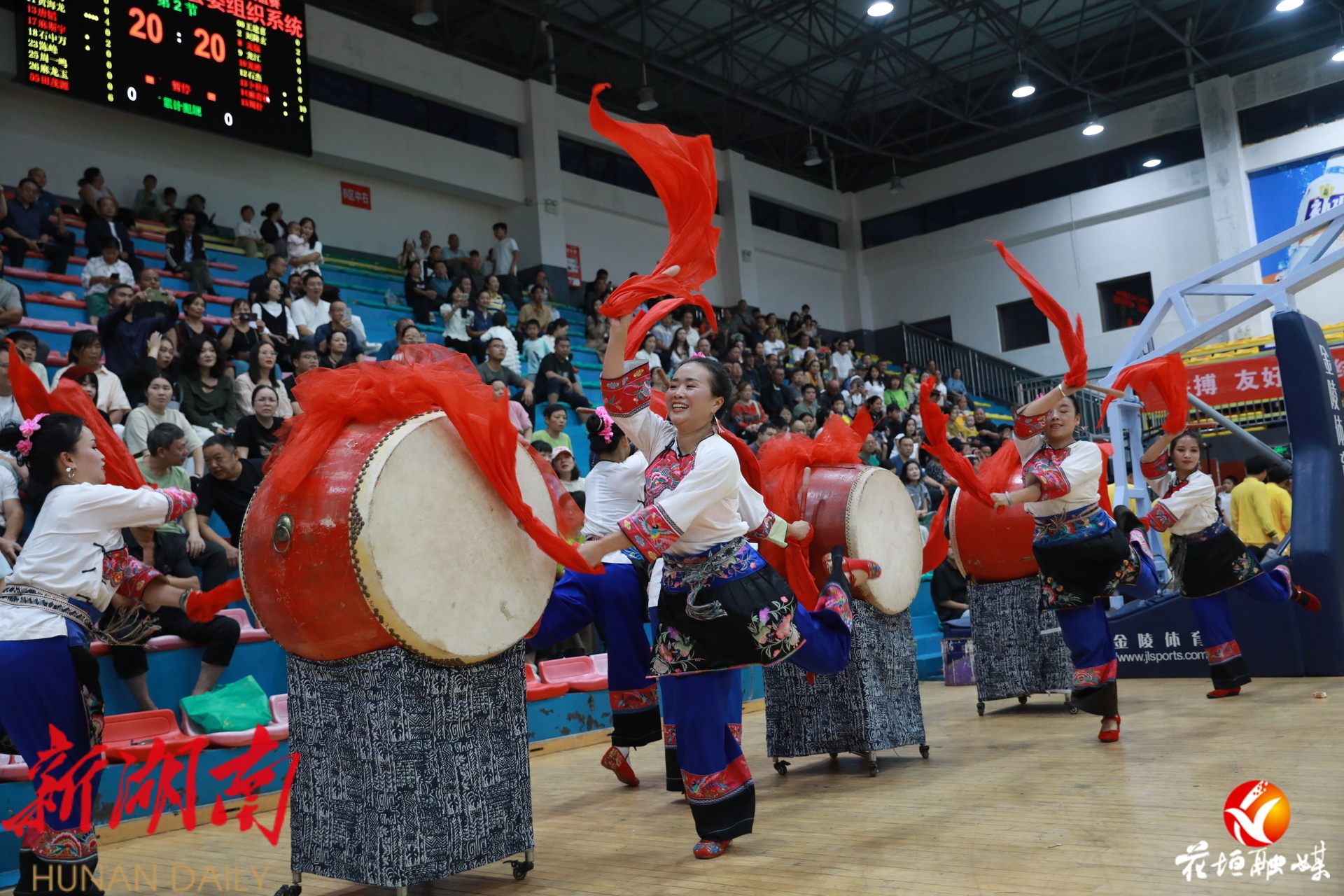 赛事不仅是竞技的舞台,更是文化与欢乐的盛会。中场休息期间,赛场瞬间变身为非物质文化遗产的展示舞台。 刚劲有力的苗族武术、气势恢宏的苗鼓、行云流水的太极、热闹喜庆的舞龙舞狮等极具地方特色的节目接连上演,为紧张的赛事注入了浓郁的文化气息,赢得了观众的阵阵喝彩。