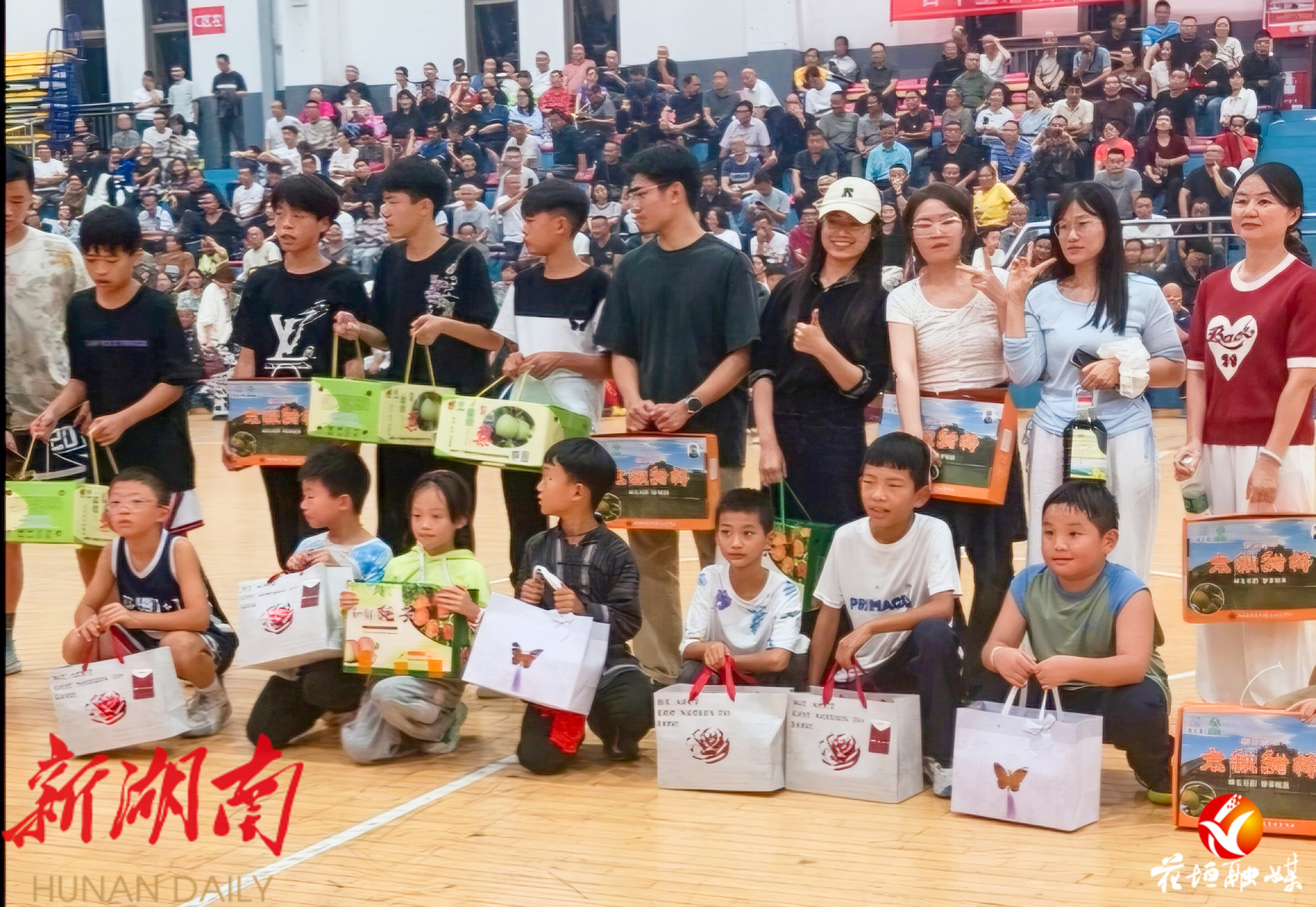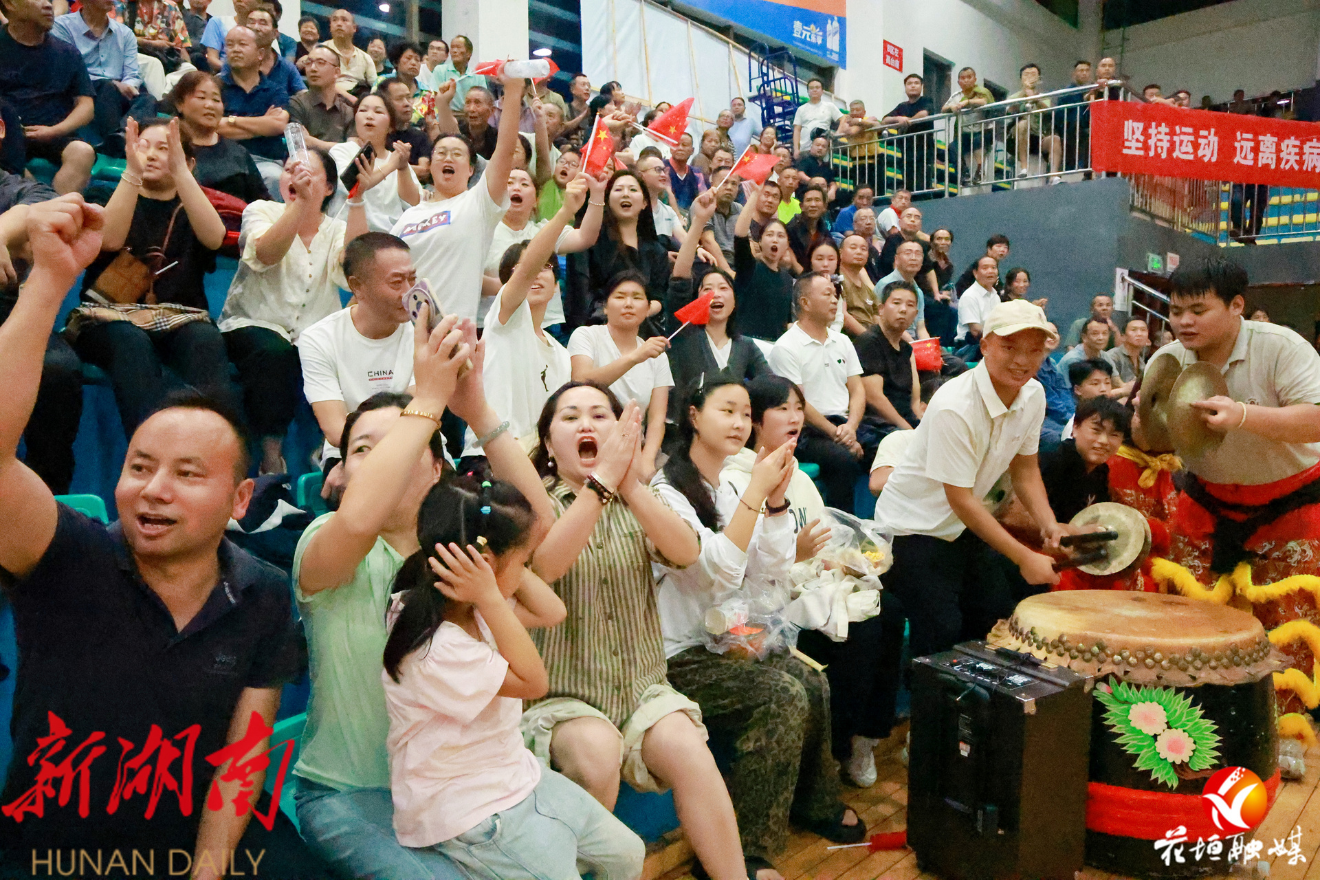 现场热烈的群众氛围贯穿始终。 主办方特别设置的观众互动投篮环节,将活动推向另一个高潮。成功投球的观众获得了花垣县特色农产品作为奖励,大家踊跃参与,欢呼声与掌声此起彼伏,让整个赛场沉浸在欢乐与热烈的氛围之中。