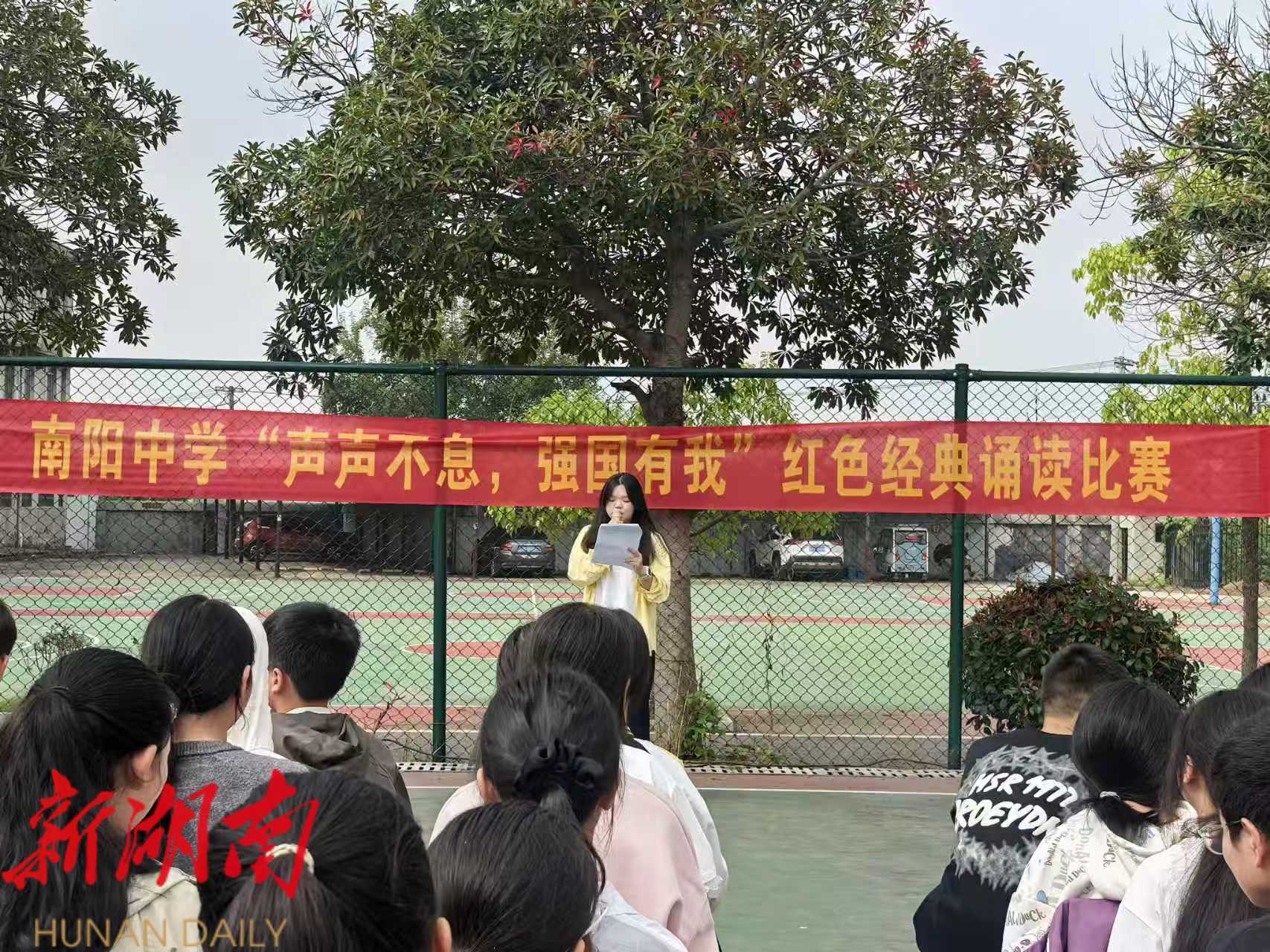 湖南日报·新湖南客户端9月29日讯(通讯员 张星 周贝)“用茫茫的夜色作墨,用疮痍的土地作纸……”9月28日,湘阴县南阳中学开展“声声不息,强国有我”红色经典诵读比赛。现场气氛高涨,掌声此起彼伏,学生们在声情并茂地诵读中接受红色精神洗礼,厚植家国情怀。