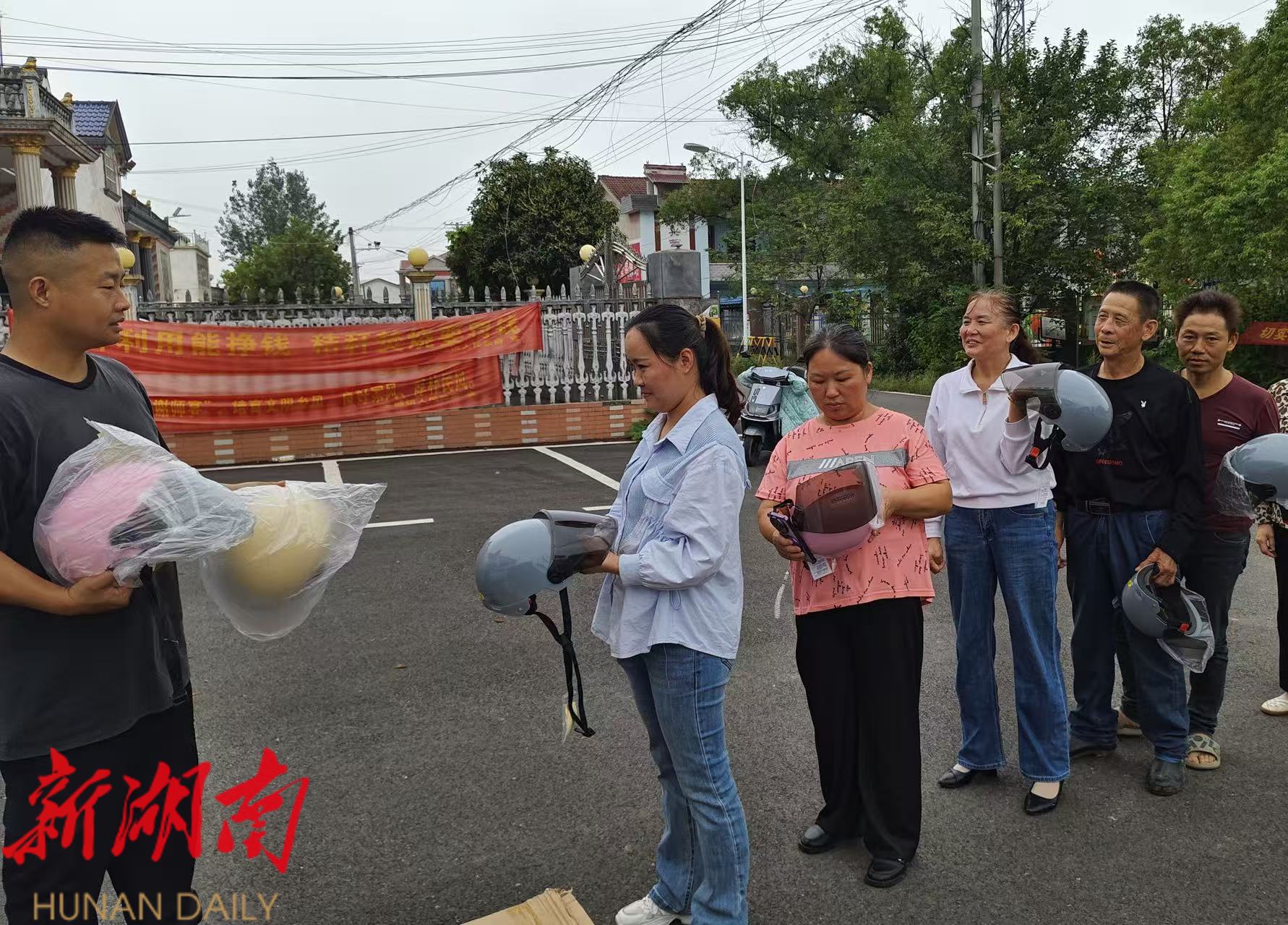 湖南日报·新湖南客户端9月29日讯(通讯员 樊思远)近日,湘阴县三塘镇各村陆续召开 交通安全屋场会 ,将300顶符合国家安全标准的安全头盔送到沿线村组困难家庭手中。 “以后骑电动车出门,一定牢牢戴好头盔。”村民老张从工作人员手中接过一顶崭新的安全头盔,脸上洋溢着安心的笑容。
