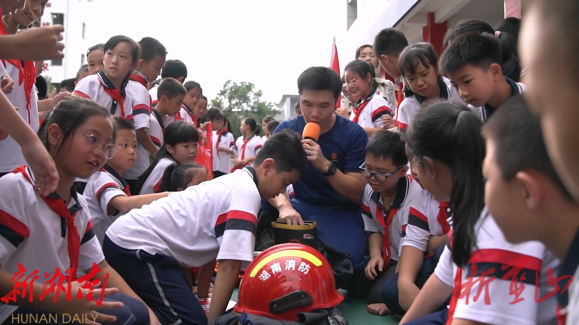 参观体验结束后,少先队员们为消防指战员系上了鲜艳的红领巾,并献上歌曲、演讲等精心准备的文艺节目。纯真的表演承载着真挚的敬意,让节日的温馨与职业的崇高感紧紧相连。