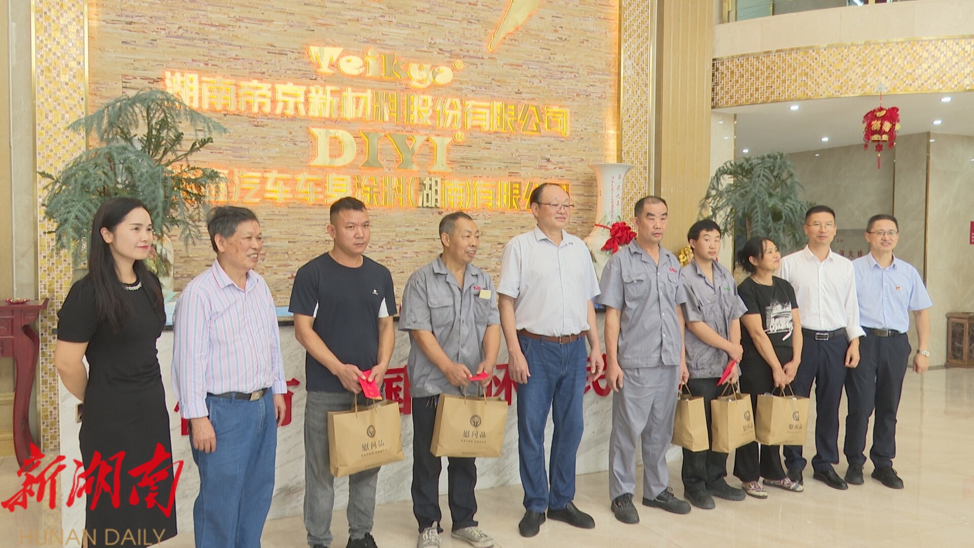 在湖南帝京新材料股份有限公司、添诚烤烟专业合作社,慰问组了解企业生产运营以及发展规模等情况,并为困难职工送上慰问品与慰问金,给他们送去国庆与中秋节日的祝福。