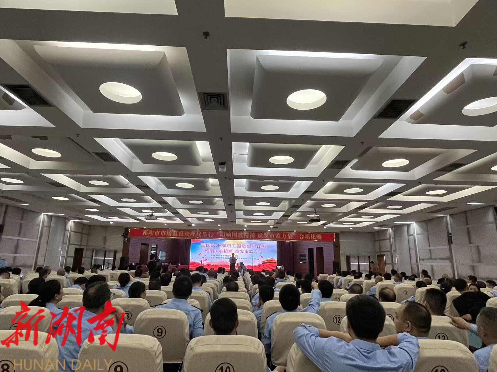 湖南日报·新湖南客户端9月30日讯 (通讯员 王文静) 9月27日,祁阳市市场监督管理局举办了“唱响国歌精神、焕发市监力量”迎国庆合唱比赛。