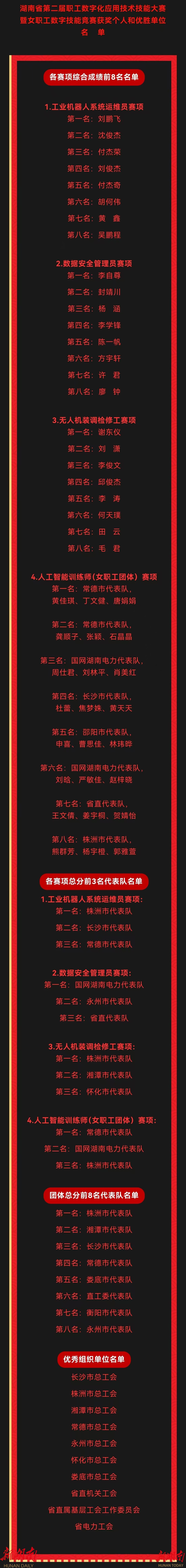 省总工会将组织获得各工种决赛前5名的职工,组建“全国职工数字化应用技术技能大赛”集训队,于11月份代表湖南参加国赛。