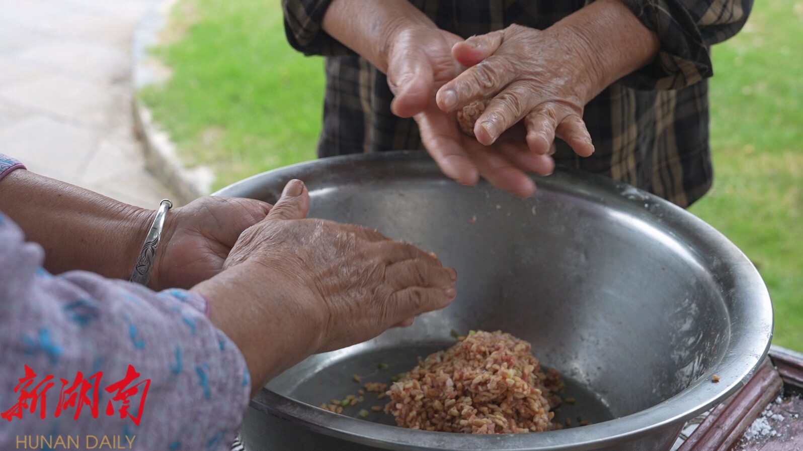 古村的烟火气,藏在每一道传承百年的美食中。这道“上杂荟萃”是板梁古村的待客珍馐——肉皮、猪心、蛋饺、瘦肉、木耳配以井水慢炖,肉质酥烂,汤汁醇厚,暖意从舌尖直抵心间。而这道“米花丸子”,则以糯米、黏米米花包裹剁碎的瘦肉馅料,油炸后金黄酥脆,是游客记忆中“家的味道”。