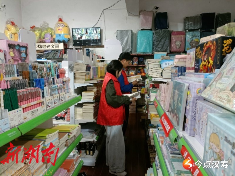 随后,工作人员转向文体店,对店内陈列的出版物、文具玩具逐一细致检查,核查是否有非法出版物及含色情、暴力等不良内容的商品,特别关注了商品来源、正版标识和内容合规性。