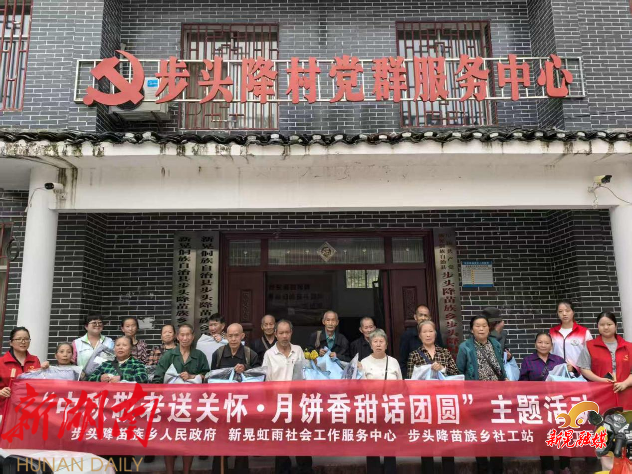 新晃融媒10月2日讯(通讯员:谭美川)为弘扬中华民族尊老敬老爱老的传统美德,让辖区老年人深切感受到浓厚的节日氛围及党和政府的关怀与温暖,9月30日,步头降苗族乡民政社工站携手乡新时代文明实践所、乡关工委开展“中秋敬老送关怀,月饼香甜话团圆”主题活动,共17位困难老人参加。