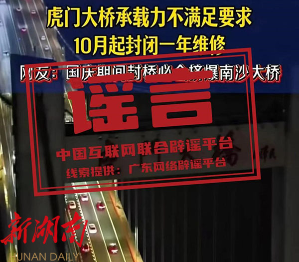 真相: 近日,网络上流传“虎门大桥10月起封闭维修”的消息。经东莞日报记者核实,该信息不准确。虎门大桥在国庆假期期间将正常通行且继续实行免费政策。 9月29日,广东虎门大桥有限公司明确表示:虎门大桥在2026年春节前不会采取全封或半封措施,具体封闭时间及方案,目前均未确定。据悉,此前东莞市发展和改革局曾发布过相关评估前的公示,其中提到预计开工时间,但并非实际施工时间。(来源:“广东省互联网举报中心”微信公众号、东莞日报)