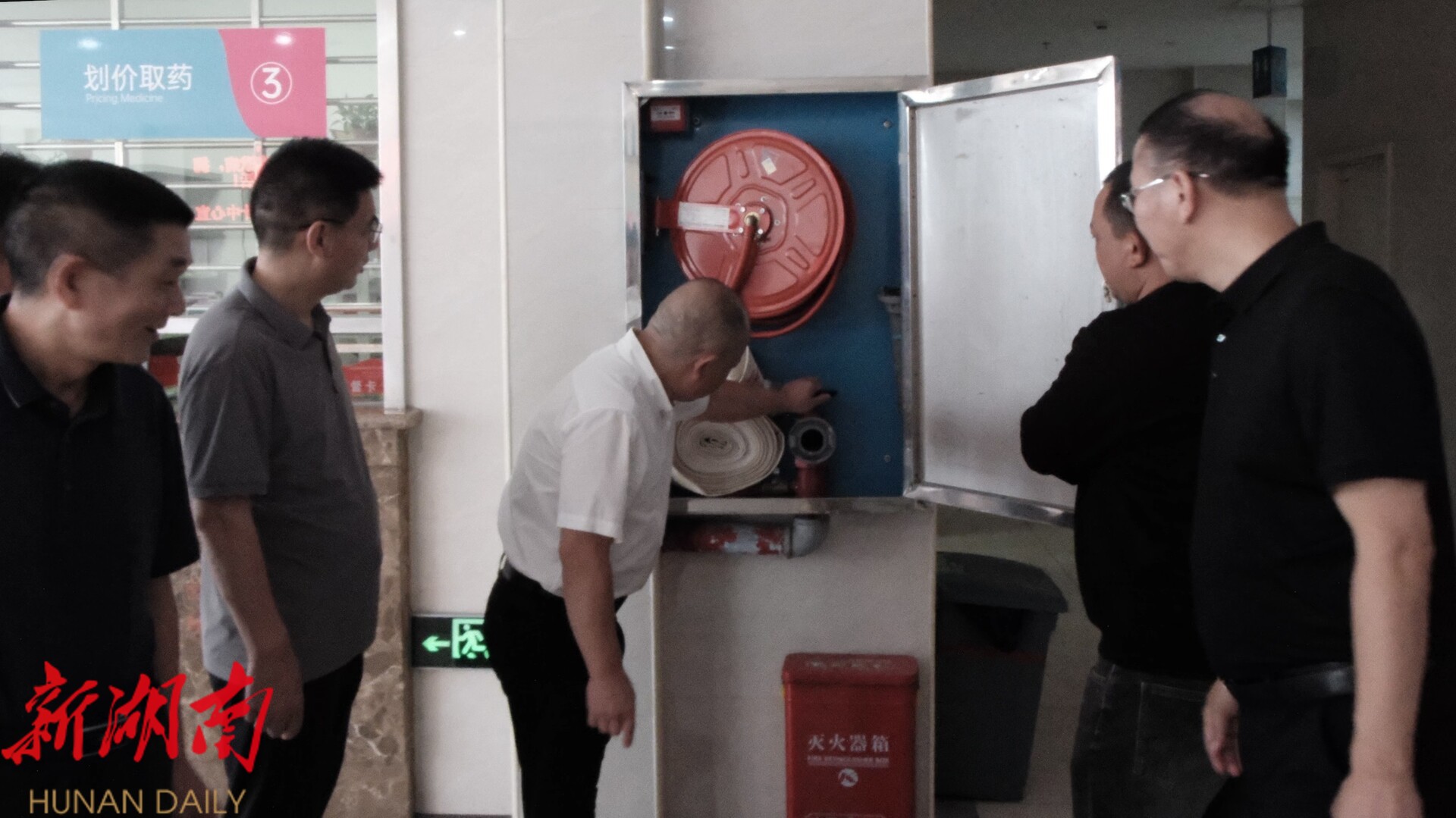 在妇幼保健院,肖黎明现场查看消防报警系统运行记录,询问值班人员应急处置流程,逐层检查了消火栓、灭火器等器材的配备、保养和完好情况,指出要定期对消防设施进行排查维护。