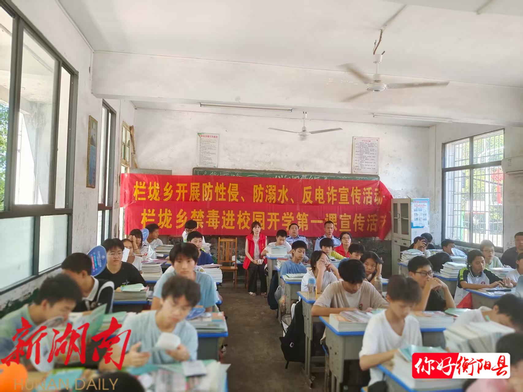 衡阳县融媒9月30日讯(记者:王佩璐 通讯员:凌琳 ) 近日,栏垅乡平安法制办联合司法所、派出所走进栏垅中学,开展毒品预防教育宣传活动,通过多种形式增强青少年识毒、防毒、拒毒能力,筑牢成长防线。