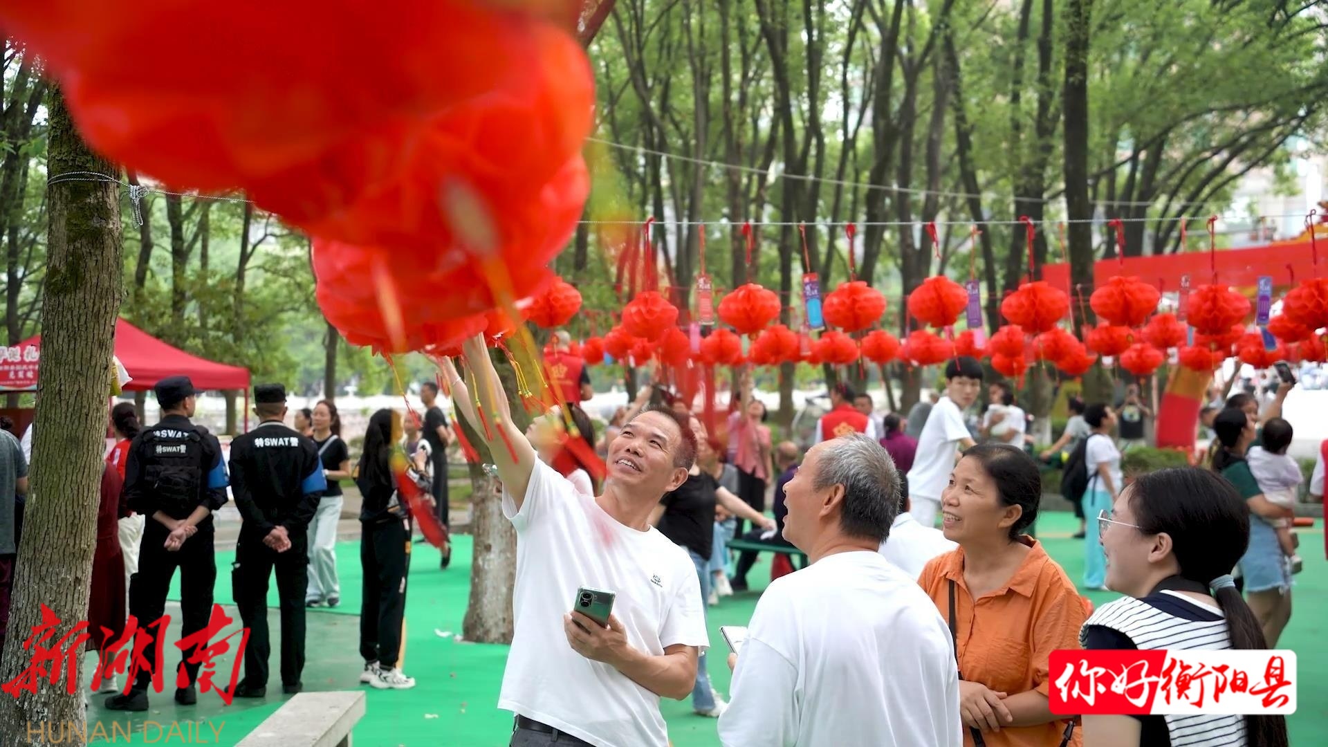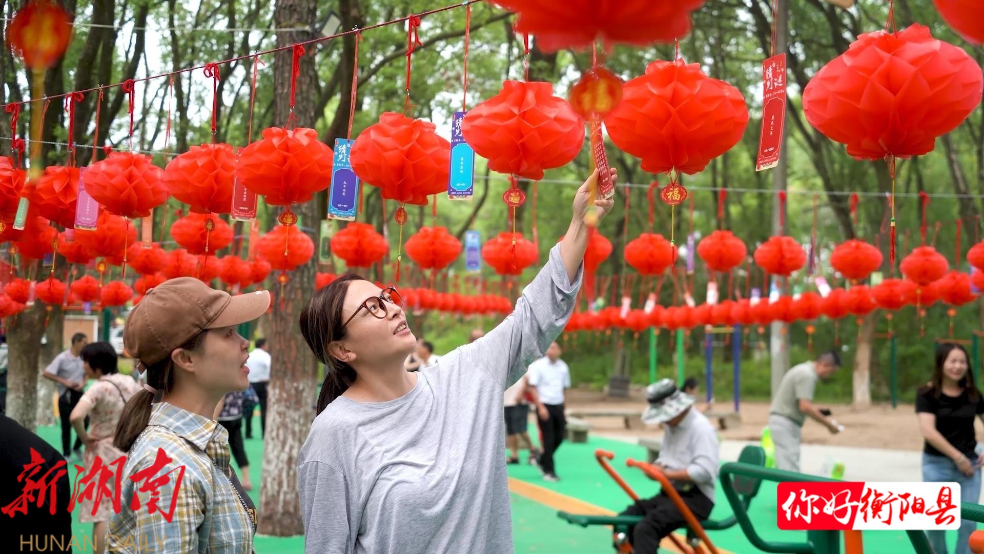 在中州公园,一盏盏红色的灯笼下悬挂着五颜六色的谜面,将现场装扮得十分喜庆,不少市民携家带口赶来参与,感受欢乐团圆的节日氛围。