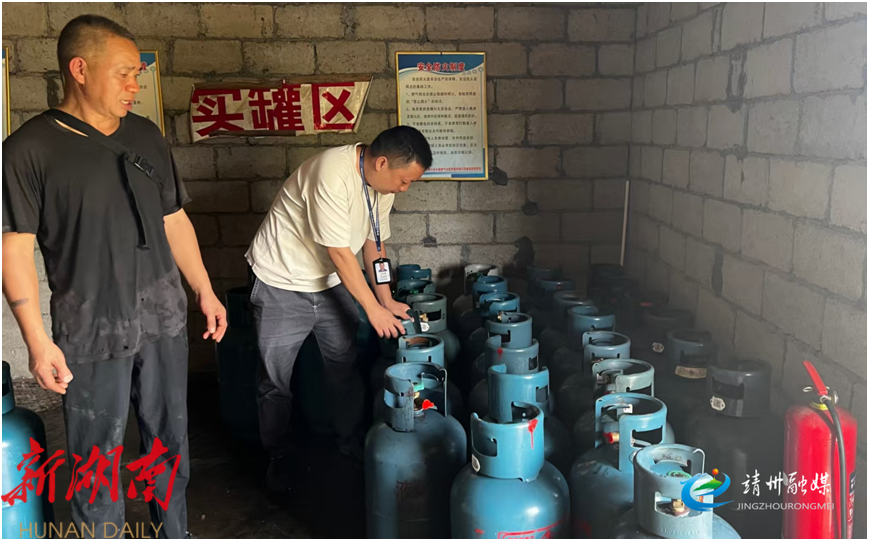 工作人员对乡镇燃气经营网点进行安全检查(黄靖 供图)