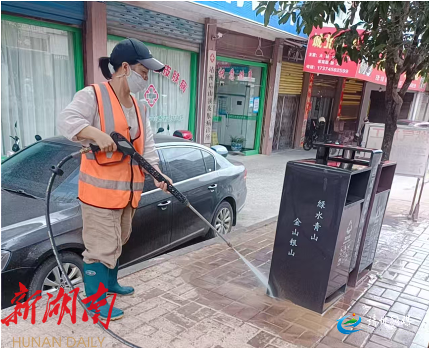环卫工人对垃圾箱进行清洁(肖化贵 供图)