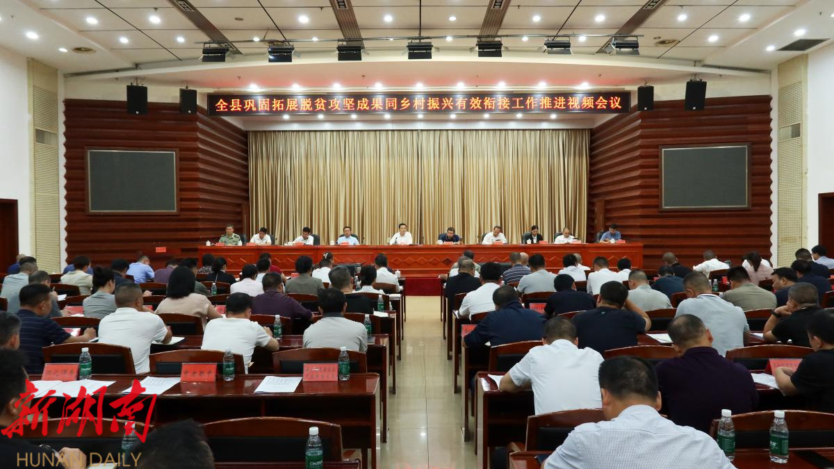 中方融媒9月30日讯 (记者:谢文清)9月30日,县委、县政府召开全县巩固拓展脱贫攻坚成果同乡村振兴有效衔接工作推进视频会议。县委书记、县长胡杰出席并讲话。他强调,要深入学习贯彻习近平总书记关于“三农”工作的重要论述,全面贯彻落实党中央决策部署和省委、省政府以及市委、市政府部署要求,全力以赴抓好问题整改和工作落实,坚决打好打赢有效衔接“收官战”。县委副书记、统战部部长杨凯程主持,县人大常委会主任张必忠、县政协主席向付和出席。