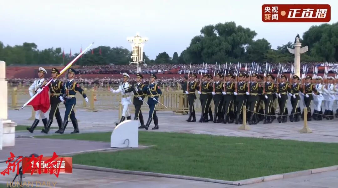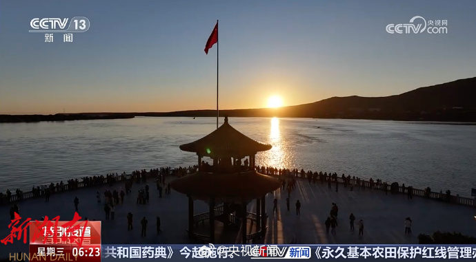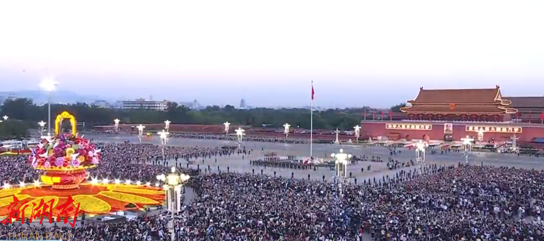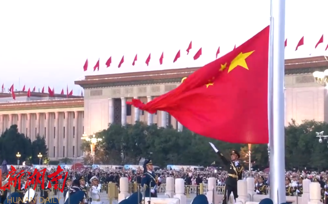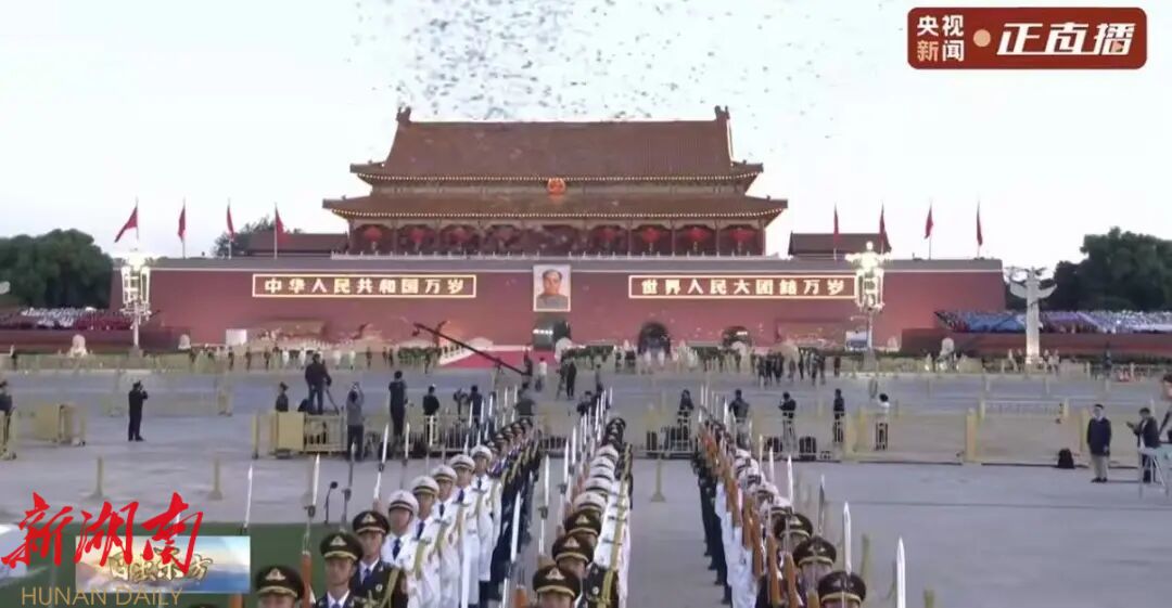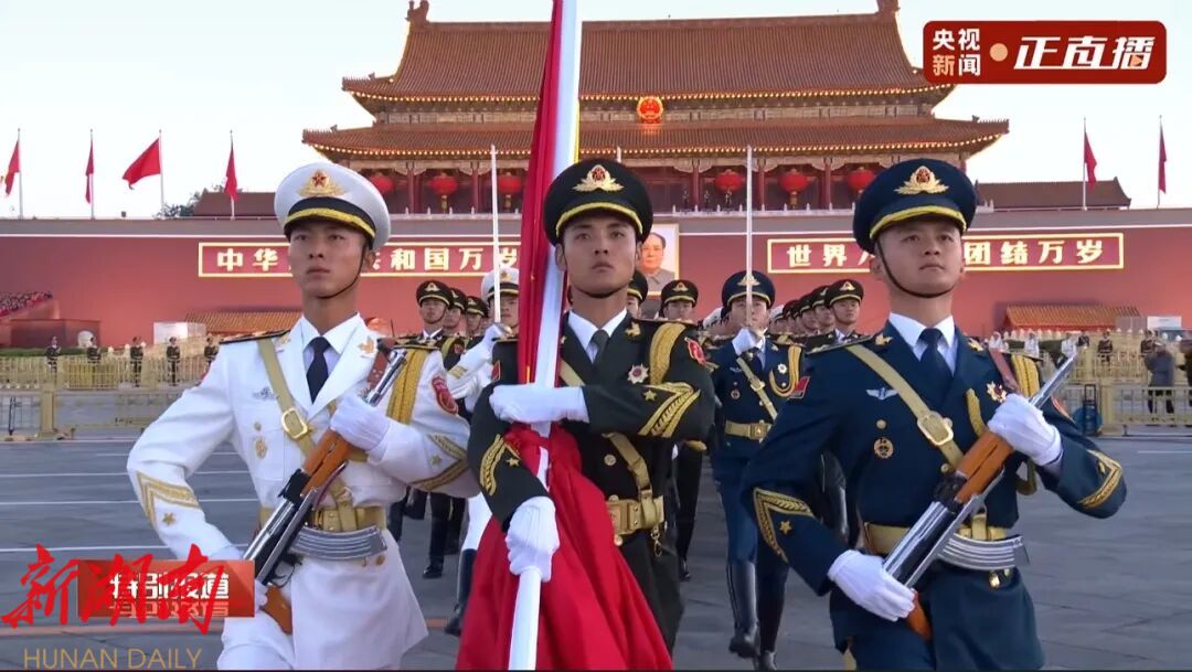 早上 6 点 11 分,现场的军乐队奏响国歌。五星红旗升起后,现场还放飞了 1 万羽白鸽。