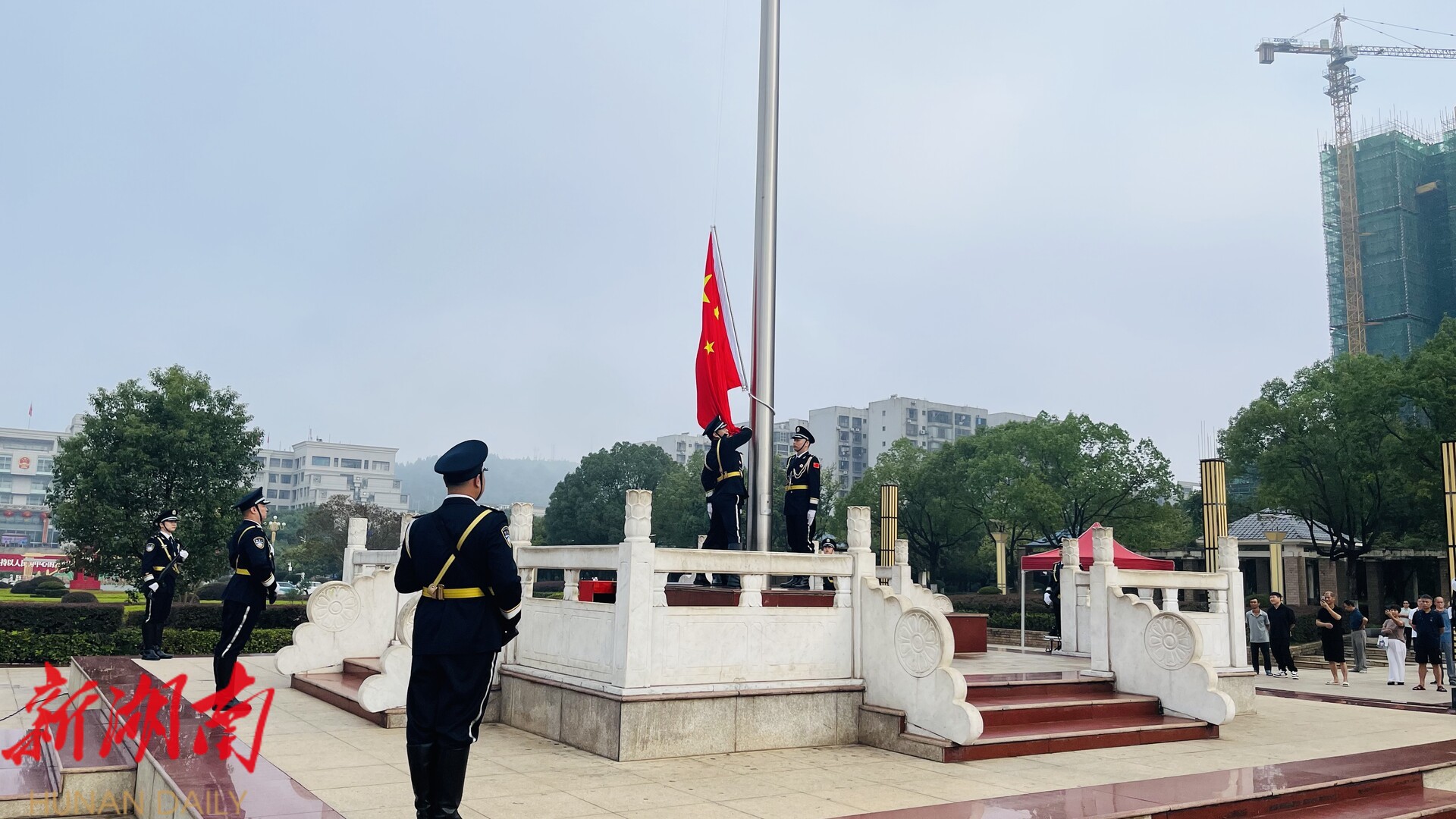 新桂阳10月1日讯(记者邓琴 谢新阳 唐汀)今天(10月1日)上午,我县在欧阳海广场举行2025年国庆升国旗仪式,庆祝新中国成立76周年。 县委书记巫初华等县领导及各界群众参加活动。