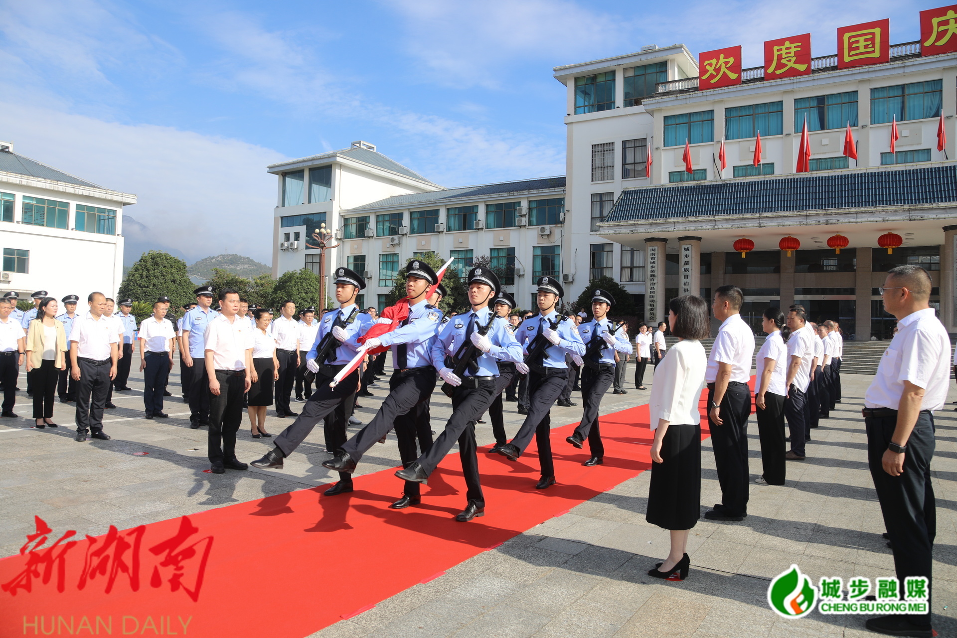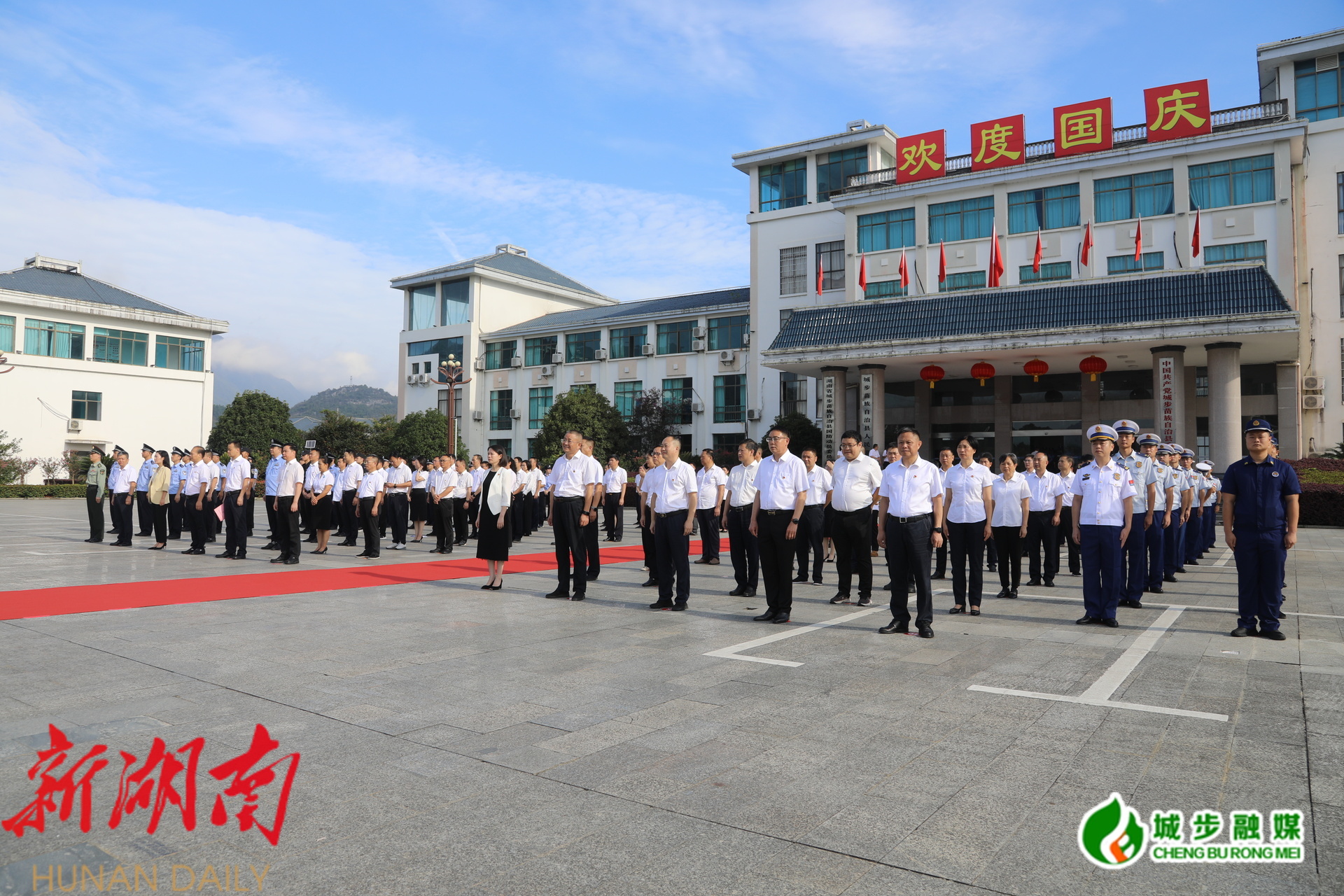 新城步客户端10月1日讯(记者 王蕾婷 刘沛含 阳远志 毛学军 见习记者 肖彤丹) 10月1日,城步苗族自治县在行政中心举行庄严的升国旗仪式,庆祝中华人民共和国成立76周年。县委书记何德波出席并致辞。县委副书记、县长王慧敏出席。县委副书记、县委统战部部长曾艺主持。李宪、唐承威、马忠华、陈芳、陈立发、何枫、唐国、陈波等县领导,县直和省市驻城单位主要负责人参加升国旗仪式,共同祝愿伟大的祖国繁荣昌盛、国泰民安。