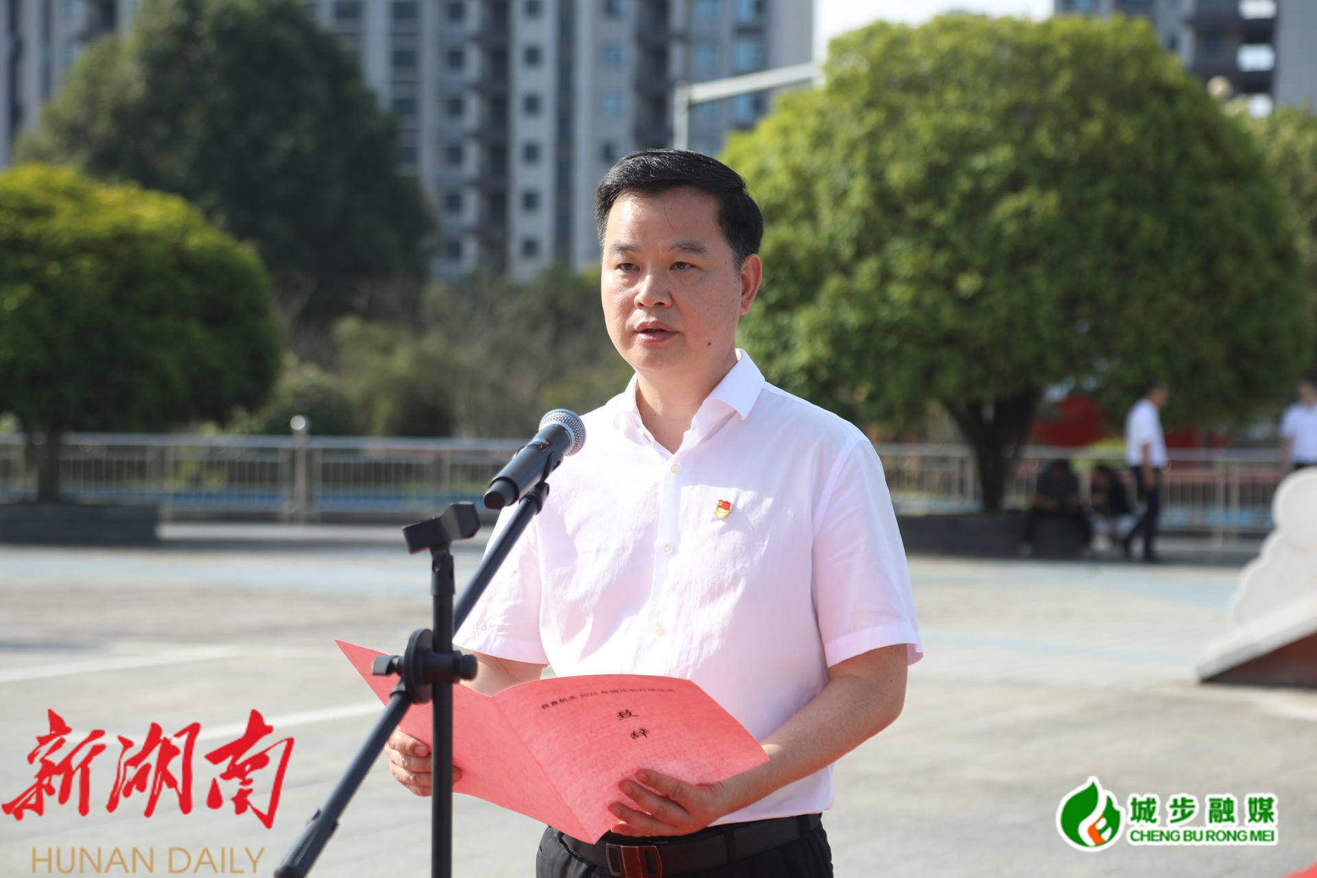 仪式上,何德波代表县委、县人大、县政府、县政协致辞。他指出,近年来,在习近平新时代中国特色社会主义思想的正确指引下,在省委、省政府,市委、市政府的坚强领导下,历届县委、县政府始终把“国之大者”融入苗乡发展实践,团结带领全县广大干部群众,以实干为笔,让产业发展的根基在深耕中愈发牢固;以创新为墨,让城乡面貌的蝶变在雕琢中愈发鲜明;以民生为本,让幸福生活的暖流在创造中愈发滚烫;以团结为砚,让社会大局的稳定在守护中愈发坚实。我们要以“功成不必在我,功成必定有我”的胸襟深耕产业,筑牢富民强县的坚实根基;要以“民之所忧我必念之,民之所盼我必行之”的深情厚植民生,让人民的获得感、幸福感、安全感岁岁充盈;要以“敢为人先、勇立潮头”的胆识驱动创新,让智慧之光照亮苗乡大地;要以“上下同欲者胜,风雨同舟者兴”的共识凝聚合力,让社会各界携手同心汇聚成推动城步高质量发展的磅礴伟力。