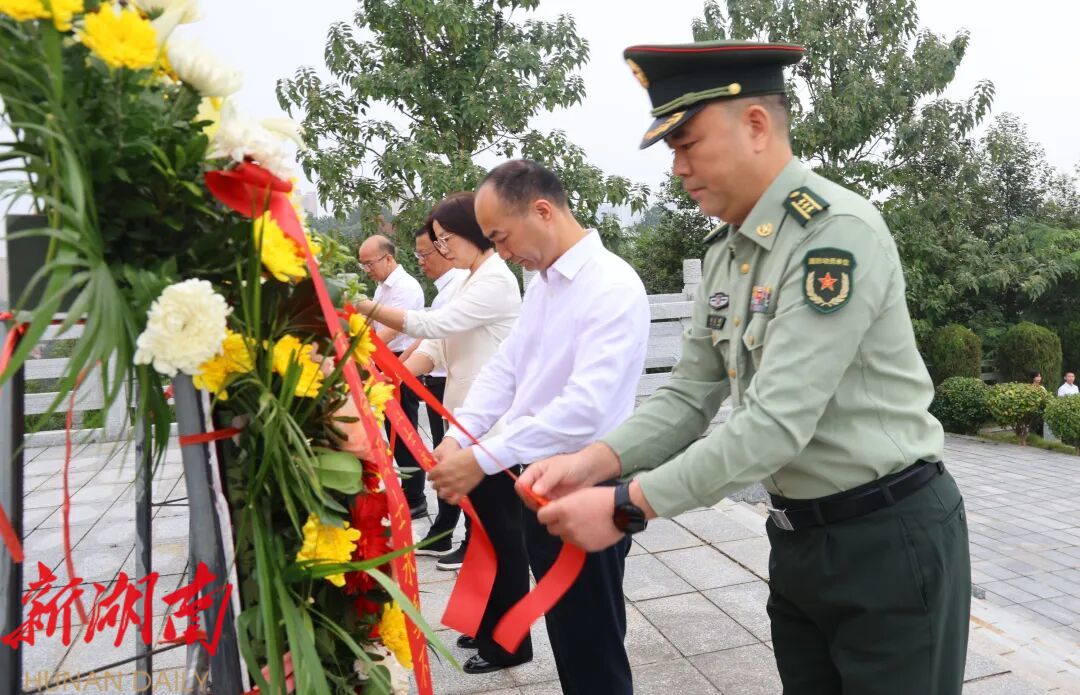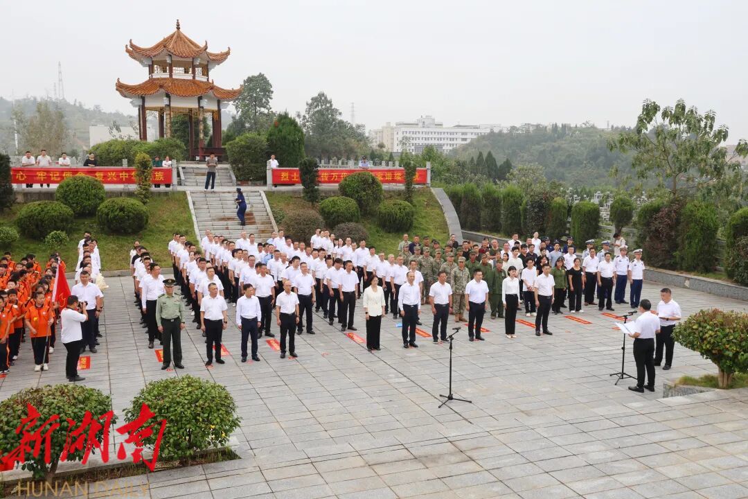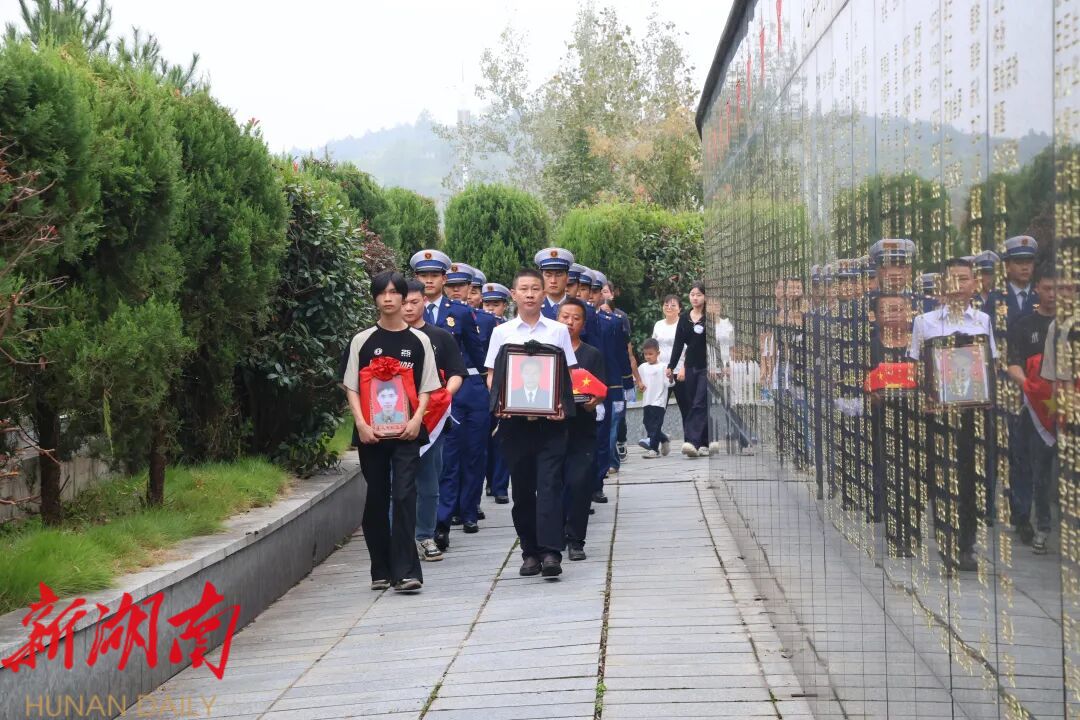 新新邵客户端9月30日讯(记者 屈凌芙蓉 唐文峰 张海兵)9月30日,是我国第十二个烈士纪念日。当天上午,新邵县在五泊山烈士陵园举行“9·30”烈士纪念日公祭暨烈士迁葬入园仪式,将邓远红、肖继光两位在扑救森林火灾中英勇牺牲的烈士骨灰迁葬入园,使其英魂永驻,供后人世代瞻仰追思。县委书记黄海蓉,县委副书记、县长谢小军与社会各界代表、烈士家属和青少年学生等近300人共同见证这一庄严神圣的时刻。