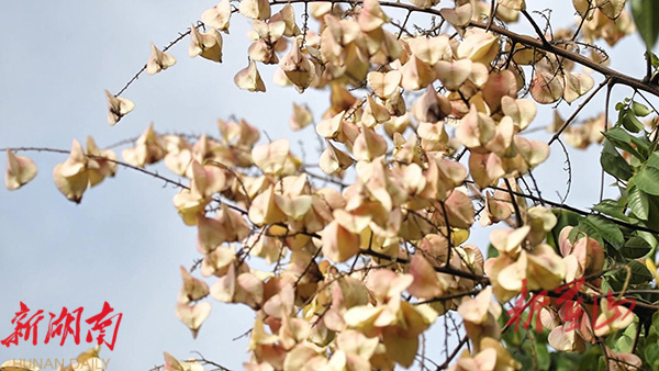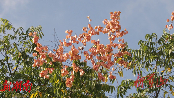 蓝山县栾树花开“中国红” 满城锦绣迎国庆