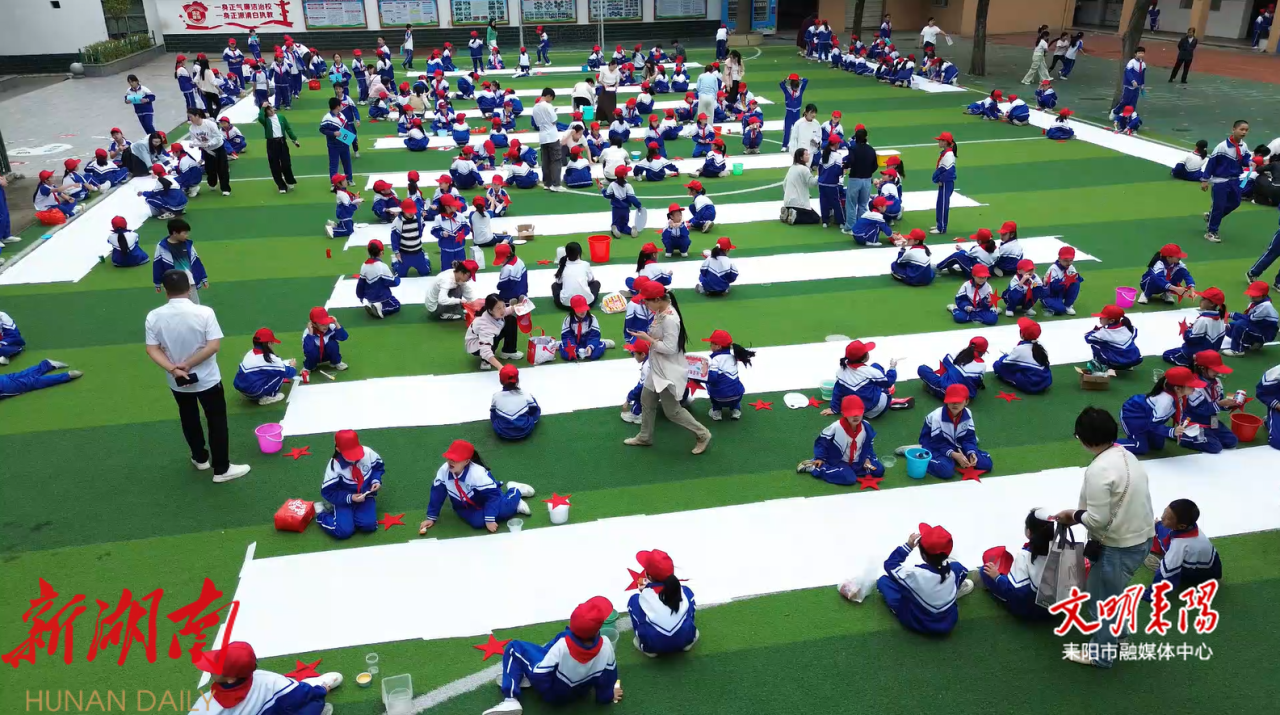 正值祖国76周年华诞,耒阳市前进小学将爱国主义教育与艺术实践结合,选择纳斯卡巨画这一形式,旨在通过“分工协作、集体共创”的过程,让学生在动手实践中理解“团结”与“责任”,将“爱国”从课本概念转化为可触摸、可参与的具体行动。该校负责人表示,此前多次开展爱国主题活动,但集体创作巨画尚属首次,希望用更生动的方式,让爱国情怀在学生心中扎根。