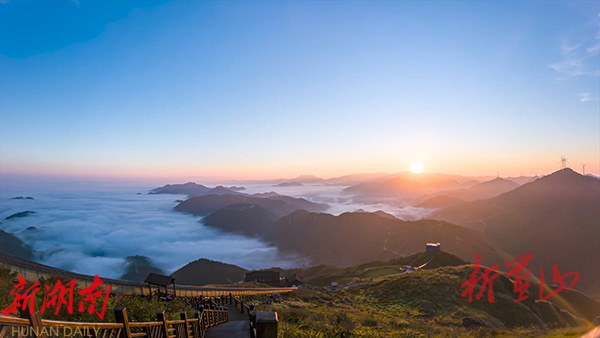 新蓝山客户端10月1日讯 (通讯员 刘振宇 盘俊杰 王玉珏)9月30日,云冰山出现壮丽云海景观。从空中俯瞰,白茫茫的云海铺满整个山谷,变幻万千。大约7时许,一轮红日如同一个炽热的火球,从云海尽头一跃而出。万道金光瞬间穿透薄雾,将翻涌的云海染成了灿烂的金色与温暖的橘红色。原本静谧的“白色海洋”刹那间被点燃,变得辉煌而充满活力。