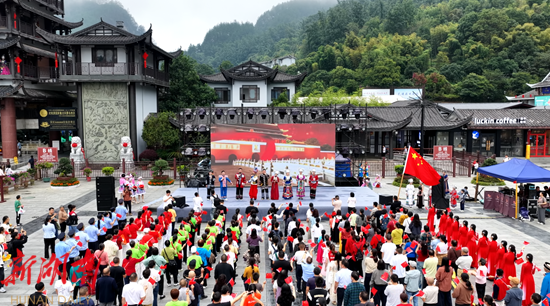 湖南日报·新湖南客户端10月2日讯(通讯员 王娇)10月1日,国庆假期首日,武陵源区吴家峪标志门广场热闹非凡,洋溢着喜庆的节日氛围。上午9时30分,《盛世华诞・鼓舞中华》全民欢庆国庆节系列活动启幕,歌声、舞蹈与欢声笑语交织成曲,为祖国母亲献上最炽热的祝福。