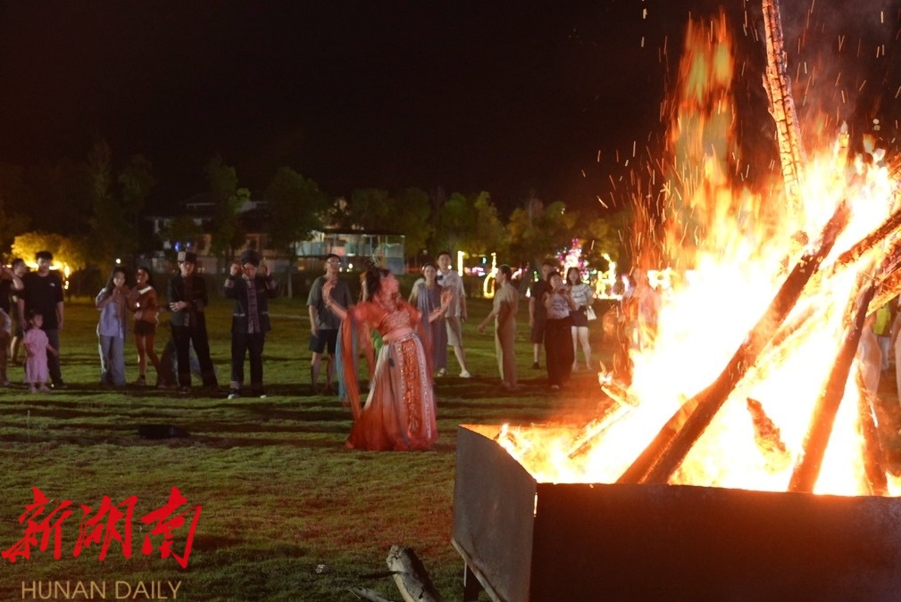 长桌宴后,篝火晚会随即拉开帷幕。熊熊篝火映红夜空,无论是多年好友,还是初识的游人,此刻都手拉手围成圆圈,踏歌起舞,尽情享受这美好时光。