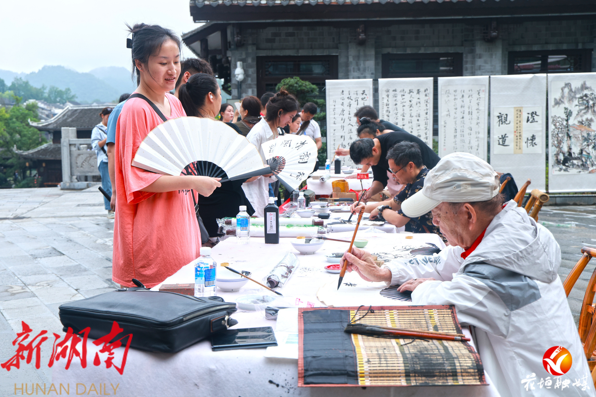书法家挥毫泼墨为游客送祝福