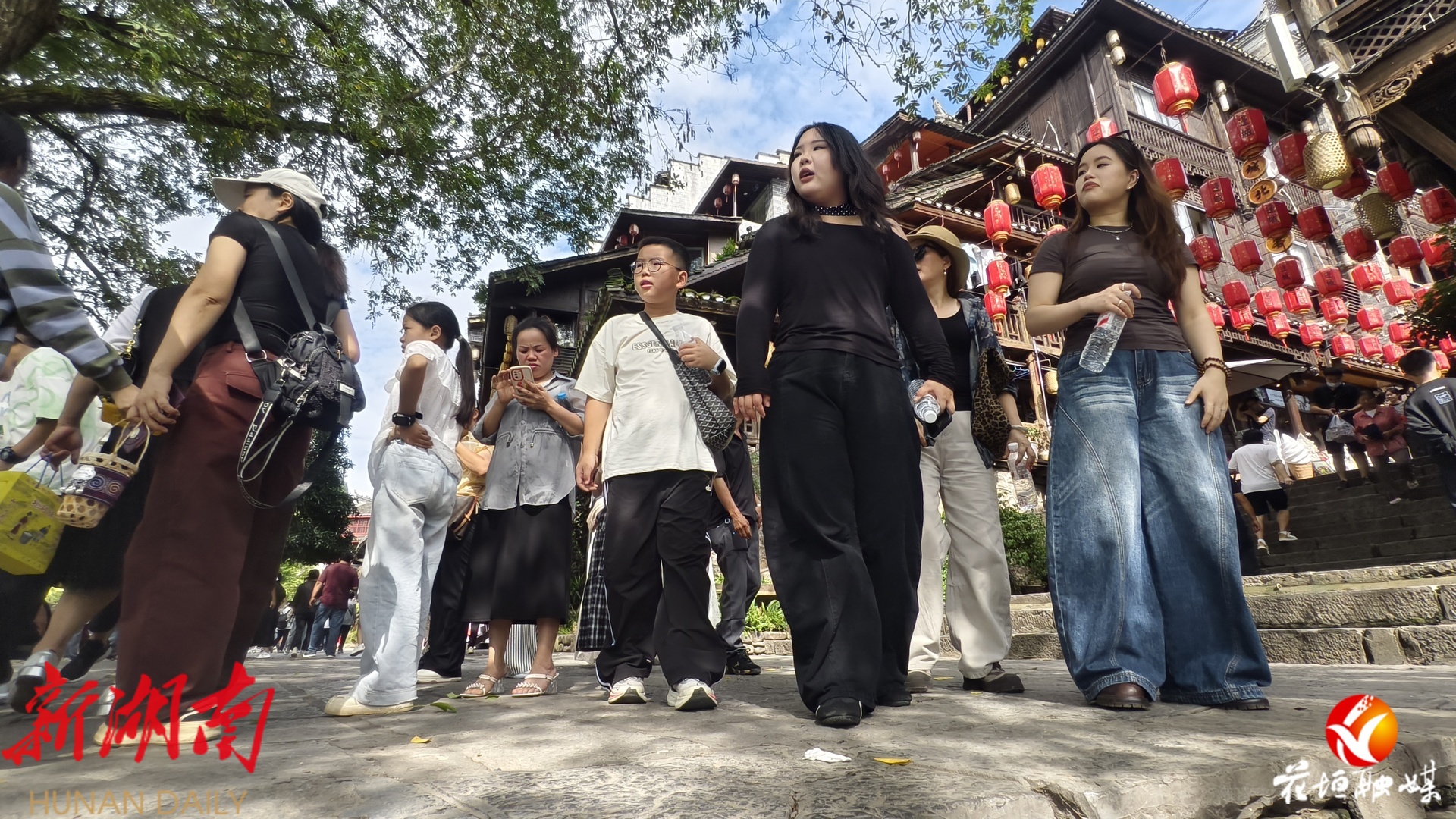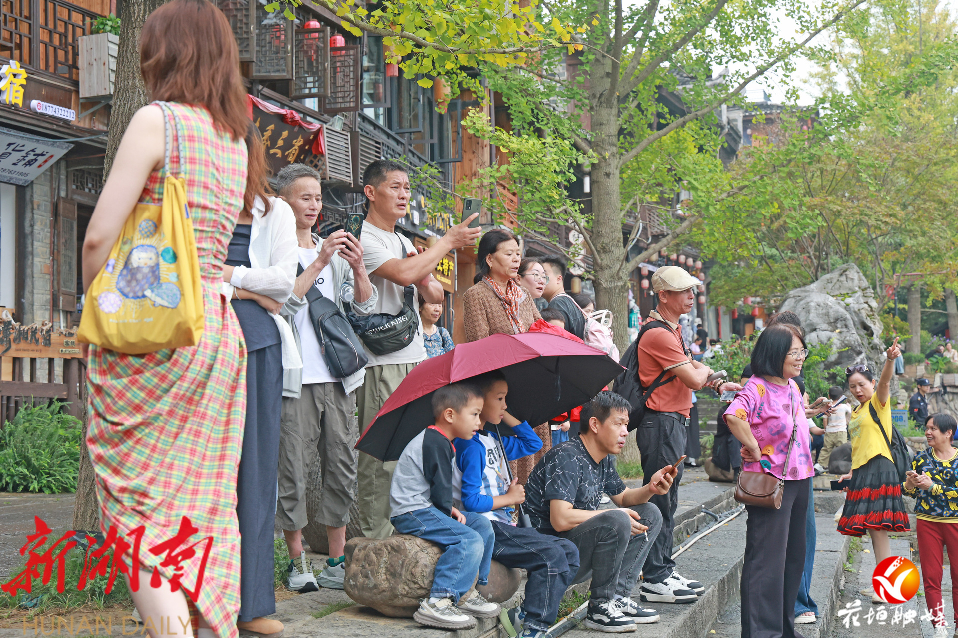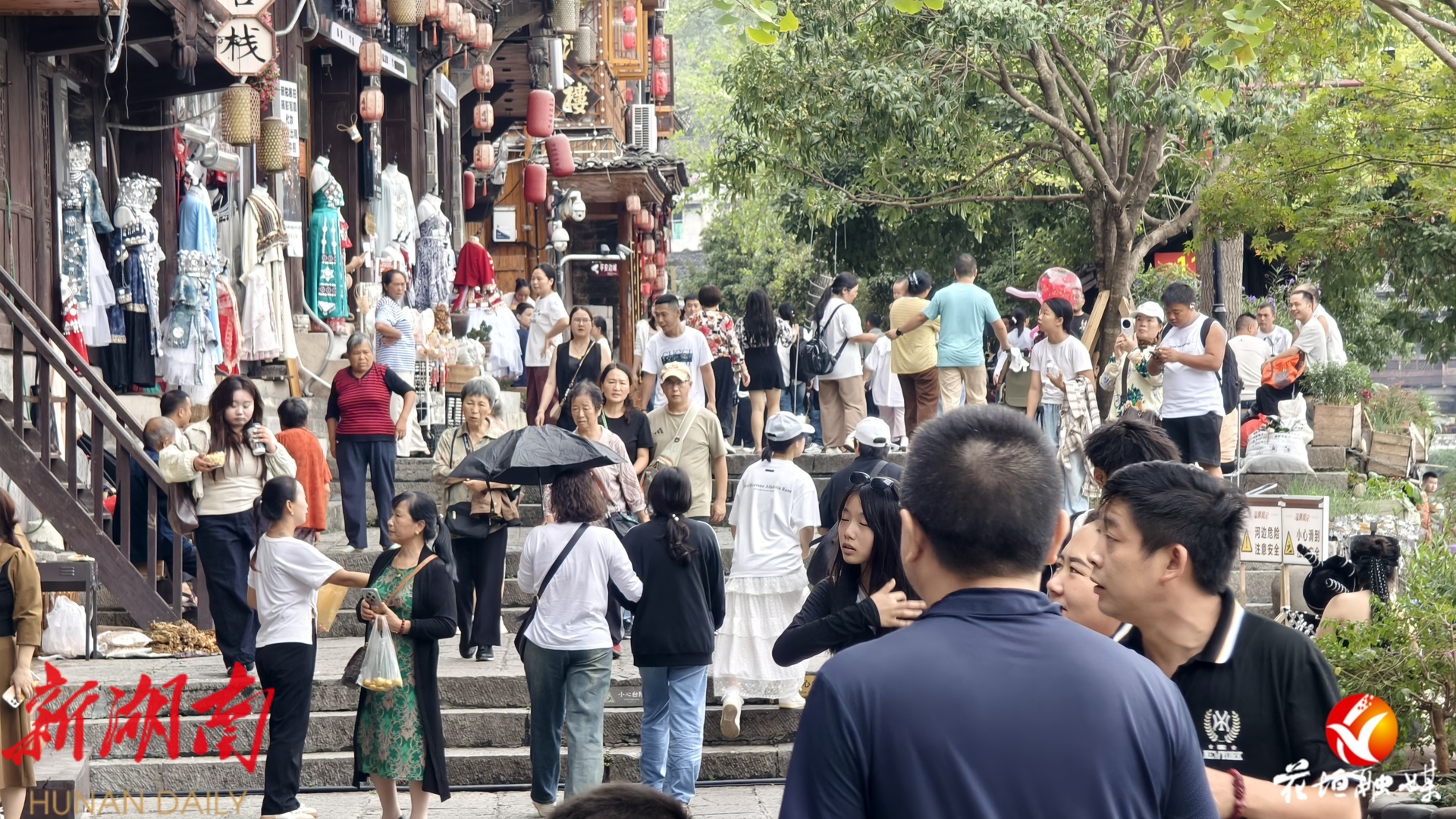 湖南日报·新湖南客户端10月2日讯(通讯员 邓雨露 张庆港 林彬 石林荣)10月1日,国庆中秋假期首日,花垣县边城茶峒景区迎来全国各地的游客。静谧的山水与熙攘的游客相映成趣,沈从文笔下的文学世界在节日中焕发出勃勃生机。