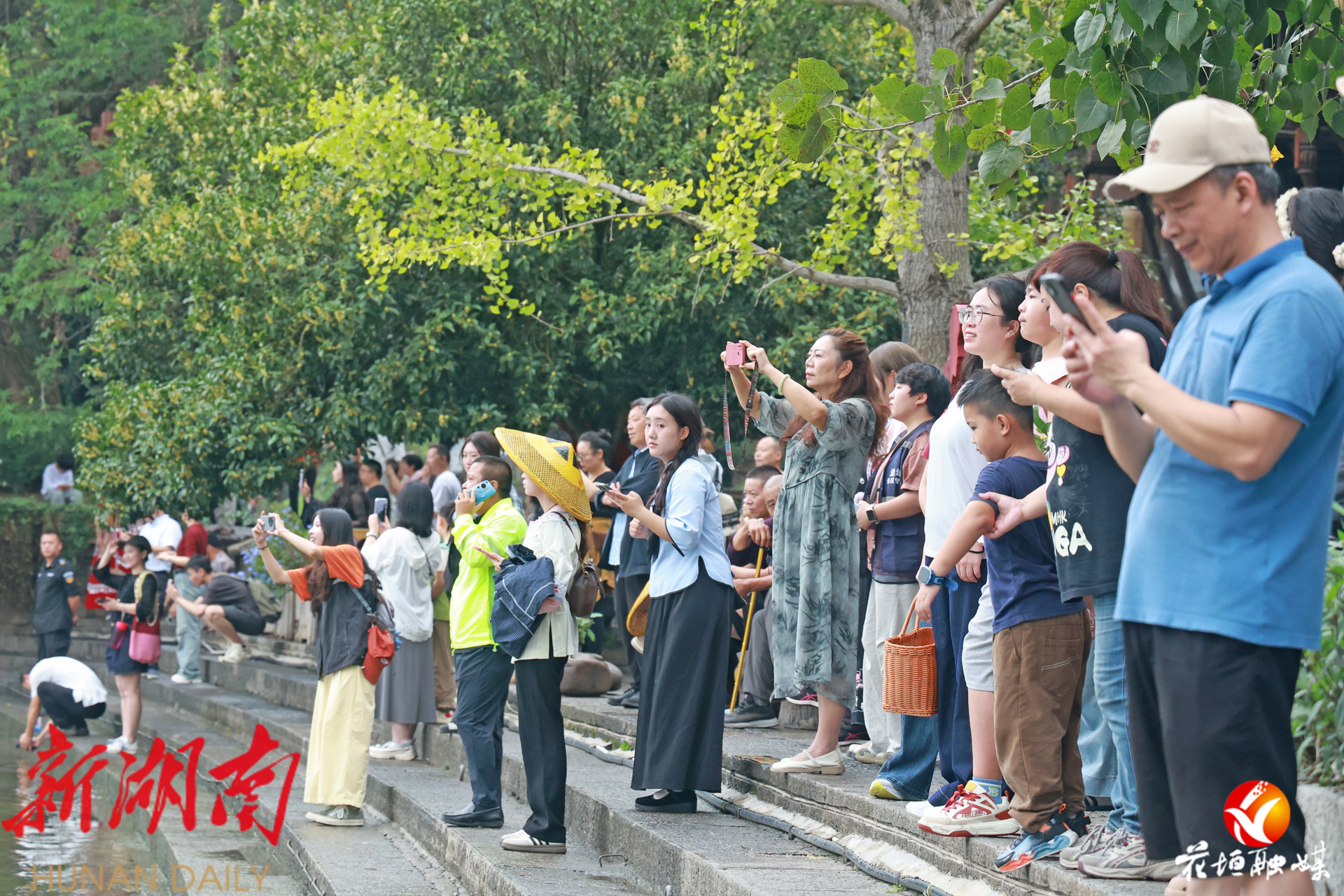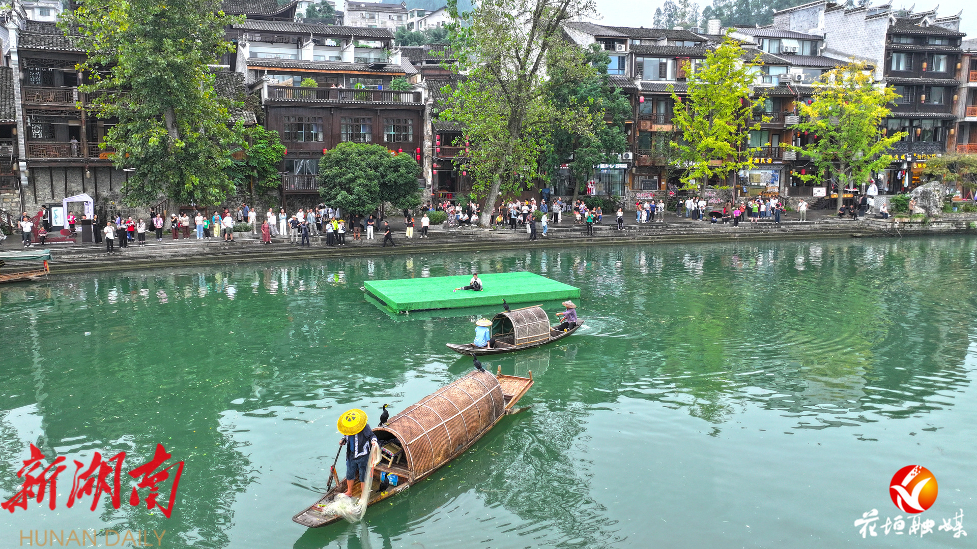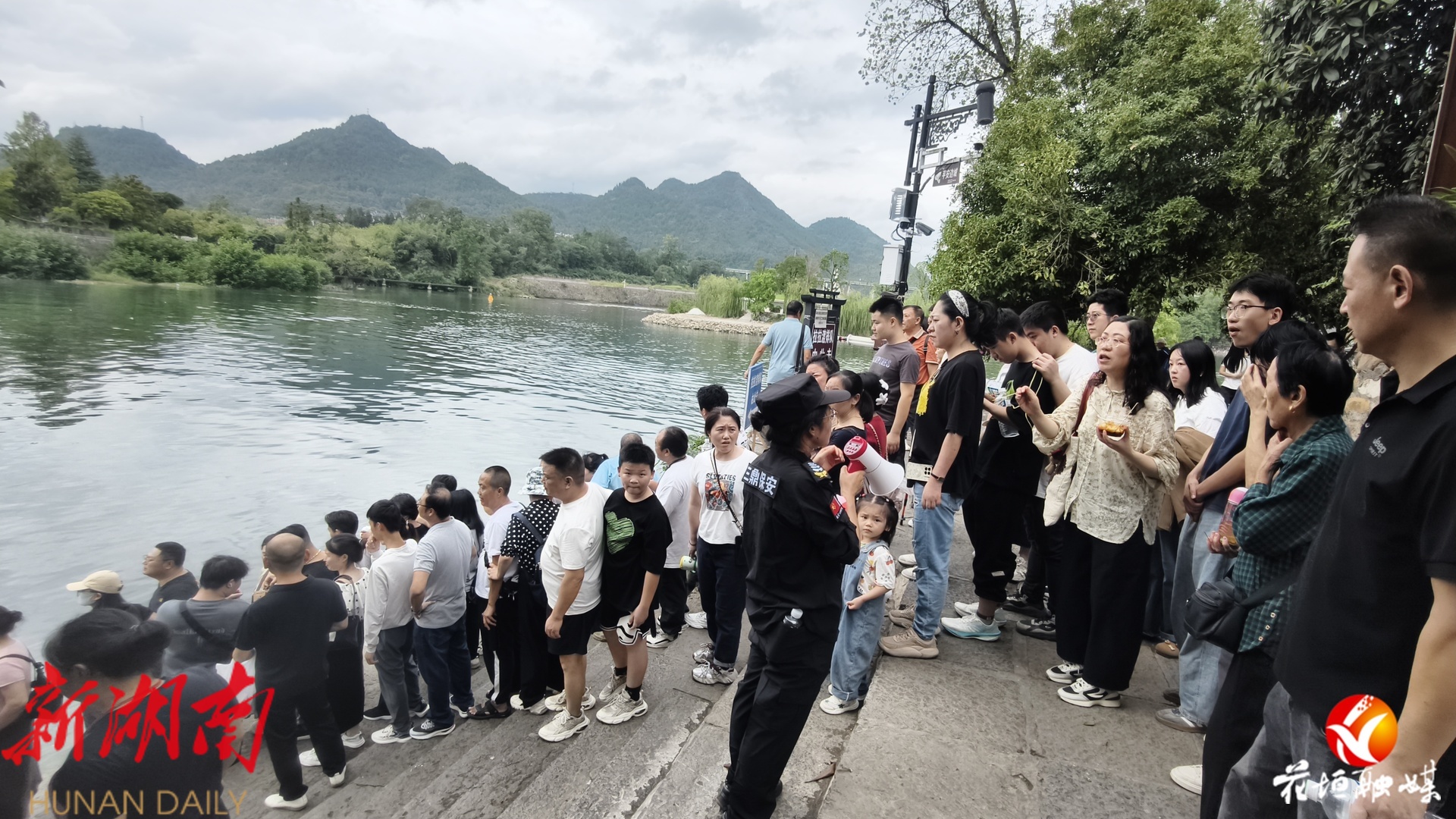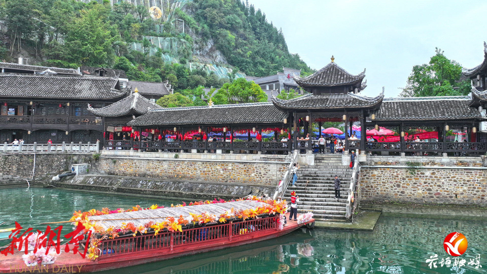 湖南日报·新湖南客户端10月2日讯(通讯员 邓雨露 张庆港 林彬 石林荣)10月1日,国庆中秋假期首日,花垣县边城茶峒景区迎来全国各地的游客。静谧的山水与熙攘的游客相映成趣,沈从文笔下的文学世界在节日中焕发出勃勃生机。