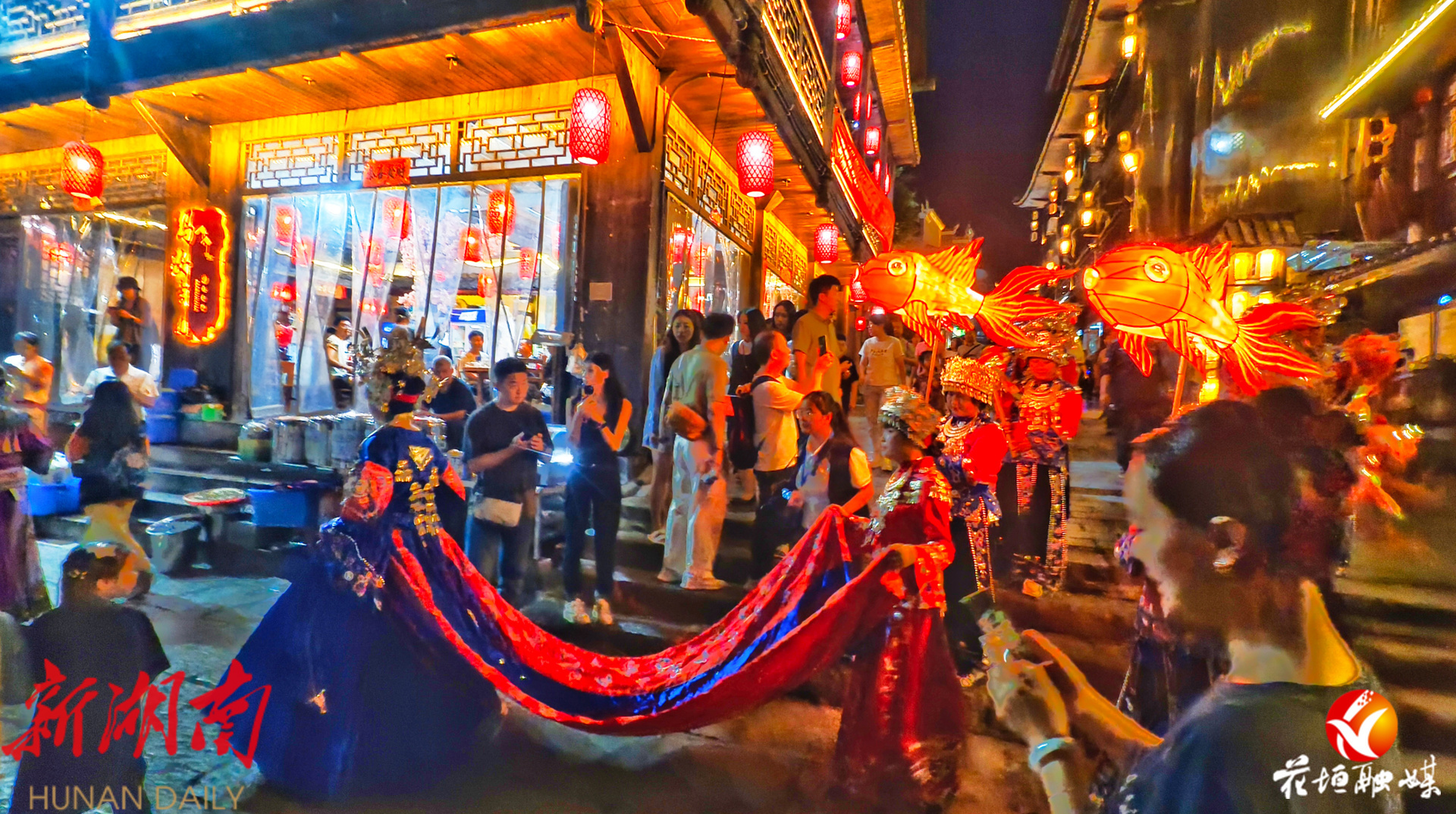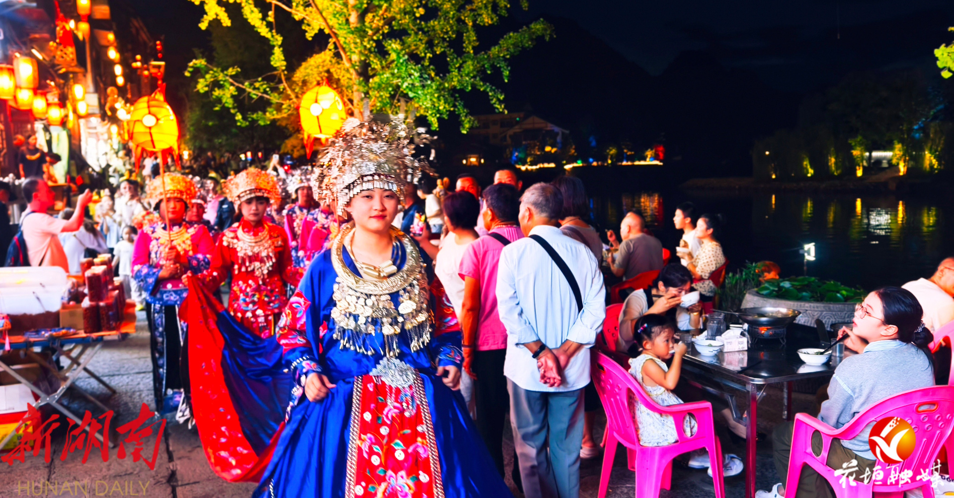 夜色渐深,清水江畔的灯火依旧温暖明亮,游客们的笑语欢声仍萦绕于古镇的街巷之间。“双节 ”期间的边城茶峒,以璀璨的夜景、鲜活的民俗与热烈的氛围,成功打造了一场兼具诗意与烟火气的文化盛宴,让每一位到访的游客,都在边城的夜色里,珍藏下一份关于团圆与美好的难忘记忆。