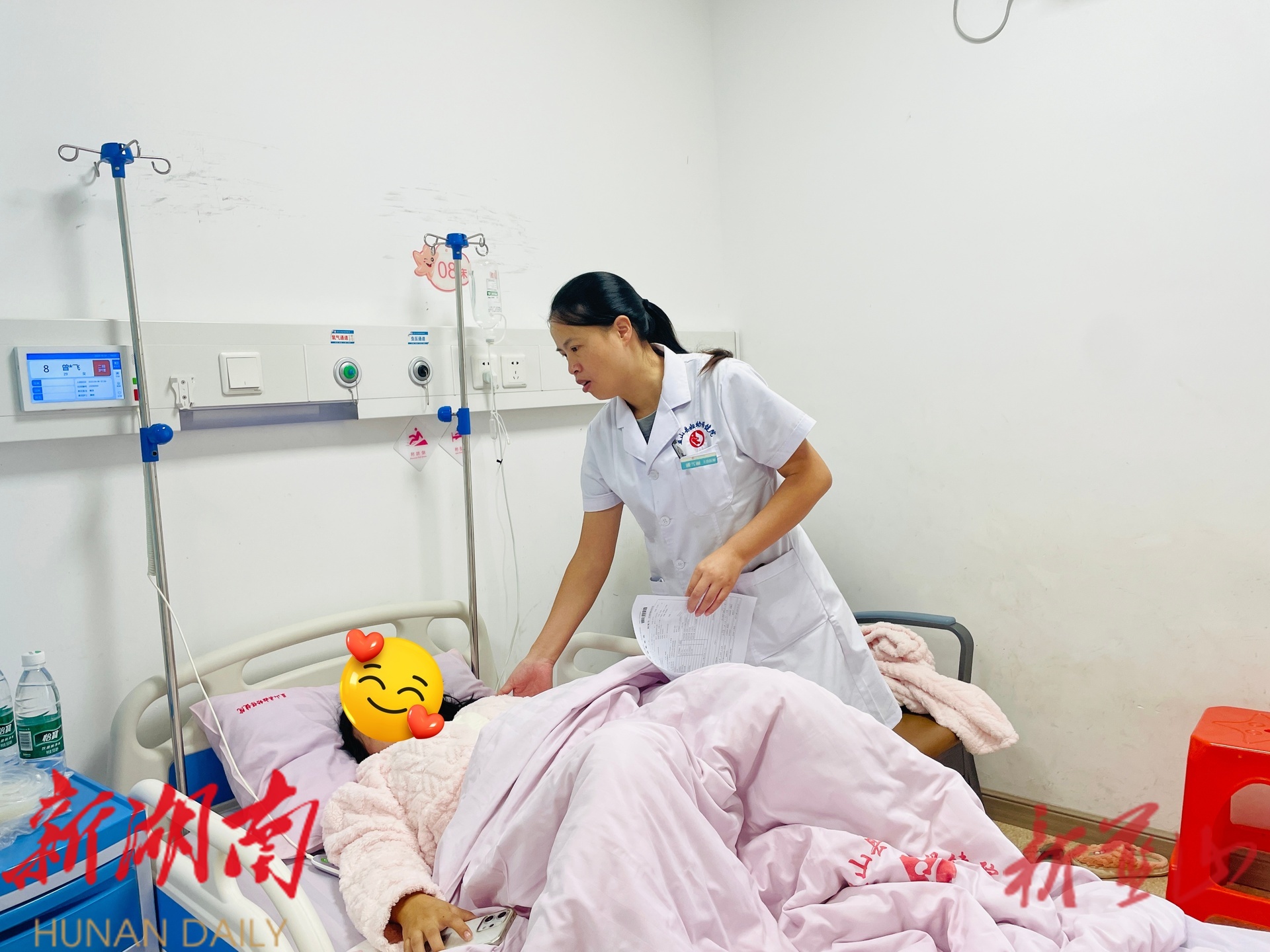 诊疗室里,“精准呵护”尽显妇幼特色。儿保科医生用摇铃逗笑宝宝再测头围,见宝宝膝盖蹭红,还教家长选软棉护膝;产科医生放大胎心音让孕妇安心,递上写有手机号的便利贴:“夜里不适随时打电话”;接种护士讲绘本分散孩子恐惧,打完针 发 “勇敢 之星奖状 ”;两癌筛查 室里 ,医生拉帘调灯轻动作,检查完还指引阿姨们喝热红糖水。
